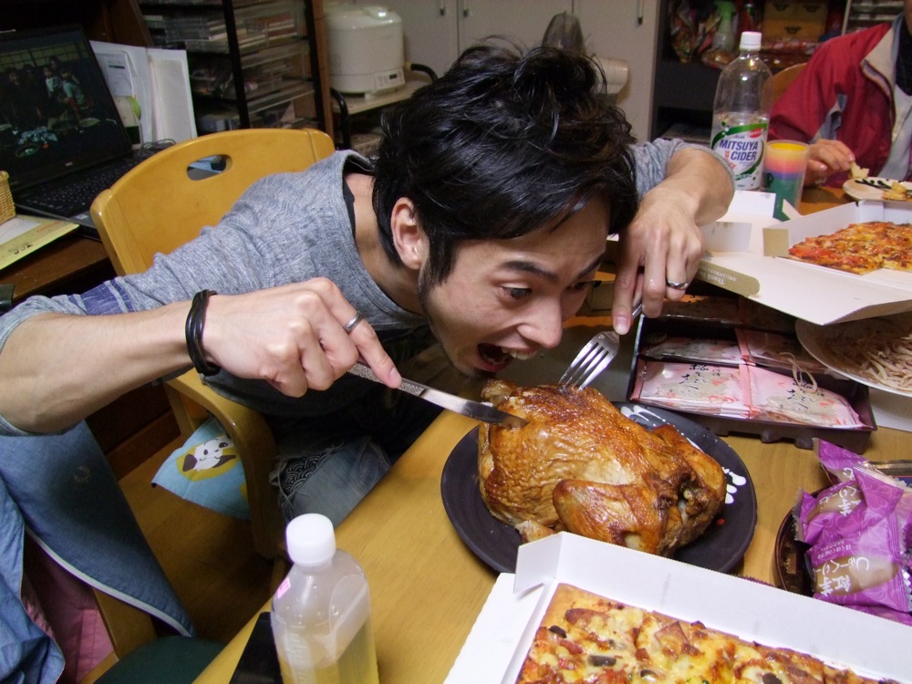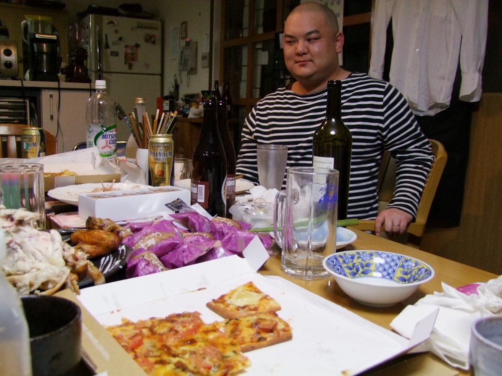 ライブ後は、そのまま徒歩1分の場所にある打ち上げ会場へ…と言うか、先程の藤田君の実家に戻ってきただけですが(笑)、ここで藤田家知り合いの方を囲んで、食事も兼ねた懇親会が開かれました。ビールが振る舞われ、ワインが振る舞われ…、そして、食事の量が半端な感じではなく振る舞われた…という事も記しておきましょう(笑)。それまでの移動の苦労が報われるような時間で、更に楽しい時間を過ごしていきたい感じでしたが、これまた次の日の朝が、とてつもなく早いのです…。時計が24:00を回って、流石に眠っておかなければいけない時間となりました。そう、このツアーは今日がゴールではありません…。あともう1日…、言わば全48時間の内、残り24時間の過ごし方が大切になってくるのです…。果たして、次の日はどんな1日が待っているのでしょうか。それまで、束の間の睡眠をとりたいと思います。