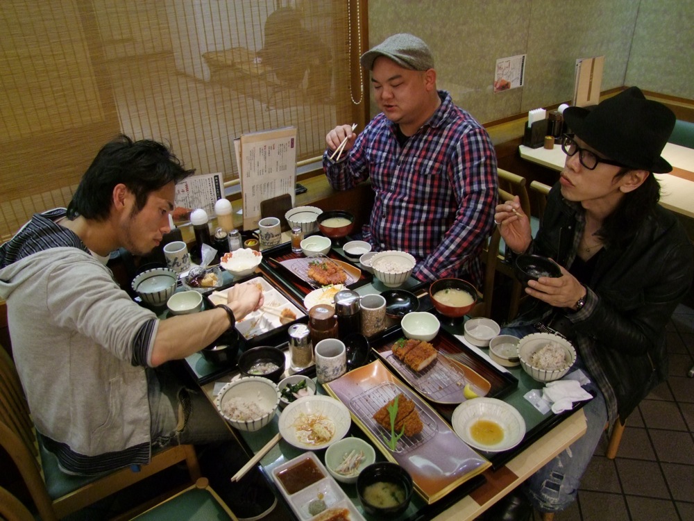 …さて、ここは大阪の堺市に位置するわけですが、ここで先週のツアーでもお世話になった、関谷君の御家族と落ち合い、このまま御飯に連れて行ってくれる事になりました。この日の演奏はもう終わりで(つまりは、ツアー中の演奏を全行程終えた事になります)、後は東京に真っ直ぐ帰るだけだったのですが、この腹ごしらえの時間は非常に大事な時間です。スタミナを付ける意味でも、トンカツを選択し、十分に満足のいく身体に調える事が出来ました。関谷君的にも、大切な家族の時間になったのではないでしょうか。どうも御馳走様でした!