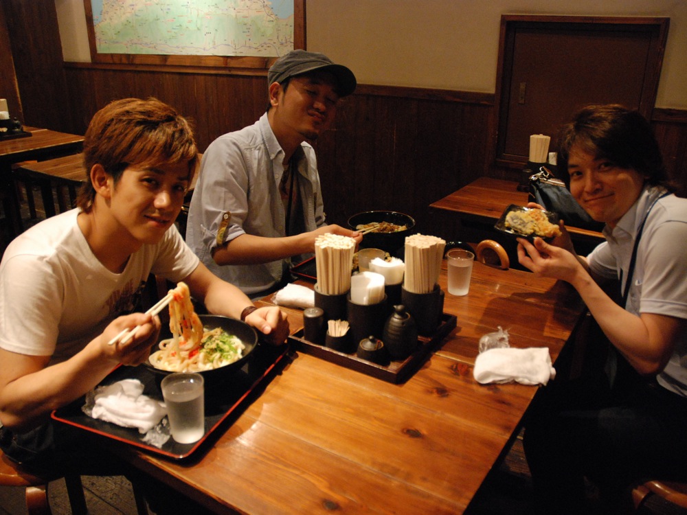 この日、お店での音響チェックの時には、既に雨は降り始めていました。正にこれから台風がやってくる前兆のような状態で、客足が心配になりましたが、それでもライブが出来るというのは嬉しい事です。自分達は自分達で、やれる事をやっていきたいものです。それは、本番前の腹ごしらえ等の上の写真にも、そのリラックスさが窺えるというものです(笑)。