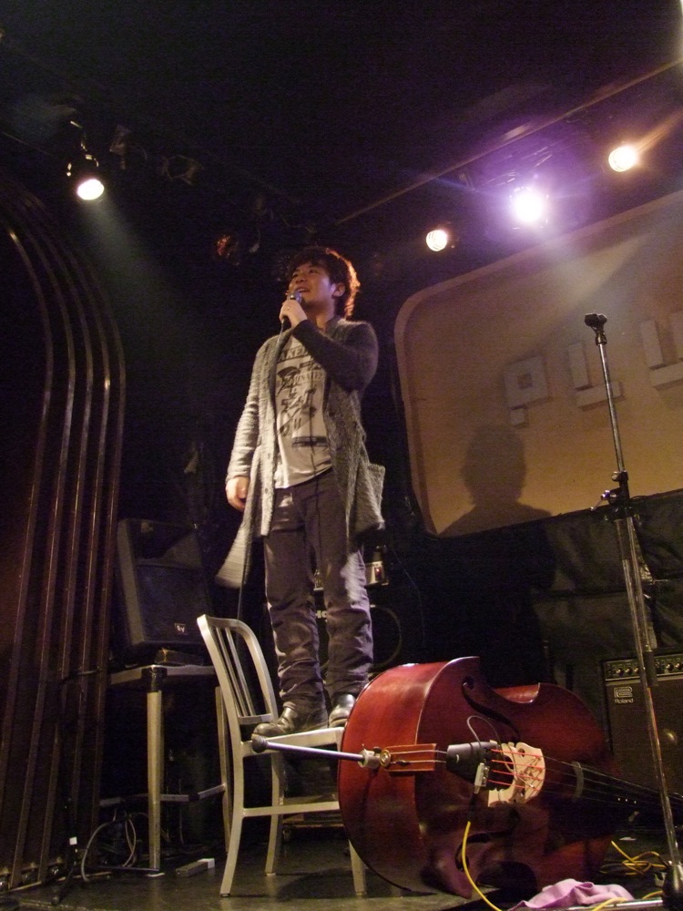 そして2番手は、自分達の関西ツアー〔TRI4TH 関西ツアー(2012.5.3~5.6)参照〕でもお世話になった、御存知カルメラです。なんと、このライブの直前にストリート演奏をしながら、この渋谷の街を練り歩いてきたらしく、あまりにも突然の事だったので自分は見られなかったのですが、その行動力たるや、流石としか言いようがありませんでした。きちんとファンも掴んでいますし、そのパフォーマンスの奥深さは、いつ見ても感動の域に達するものです。