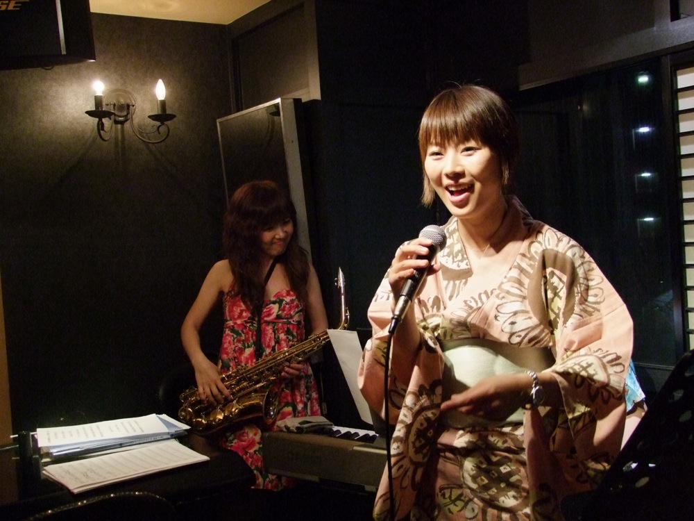 まず3days初日となった7月4日は、ボーカルに折井敦子さん、サックスに加地直子さん(歌う時もありますが、この日はサックスに専念)、キーボードに自分という3人での陣容でしたが、突然、ボーカルの東野康人さんが、サプライズ土産(左上写真参照)を持ってお店に登場したのですから驚きです。せっかくなので、何曲か歌って頂きました♪…このフレキシブルさが Kuro の良さでもありますが(笑)、ある程度の実力が無いと、なかなか出来ない状況でもあり、改めて、何だかんだで9年続いているお店でもあるのだなと、変に感心してしまった瞬間でもありました。