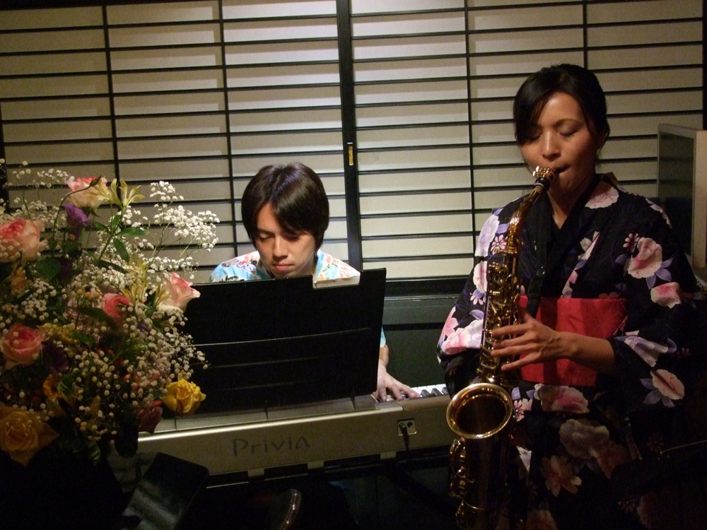 そして最終日となった7月6日。この日は、サックスに松山ますみさん、ボーカルに石川早苗さんという初の組み合わせで、2人が共演する事はなかったものの、どちらもジャズを母体にした演奏を見せており、意外にも共通の枠の中でステージをお送り出来た1日でした。流石に3日目ともなると、お店も少し静かな雰囲気になっていましたが、やはりビールやら赤ワインやらが振る舞われて、なかなか楽しい状況に…(笑)。お客さんも温かく、アットホームな雰囲気の中で過ごせた時間でもありました。