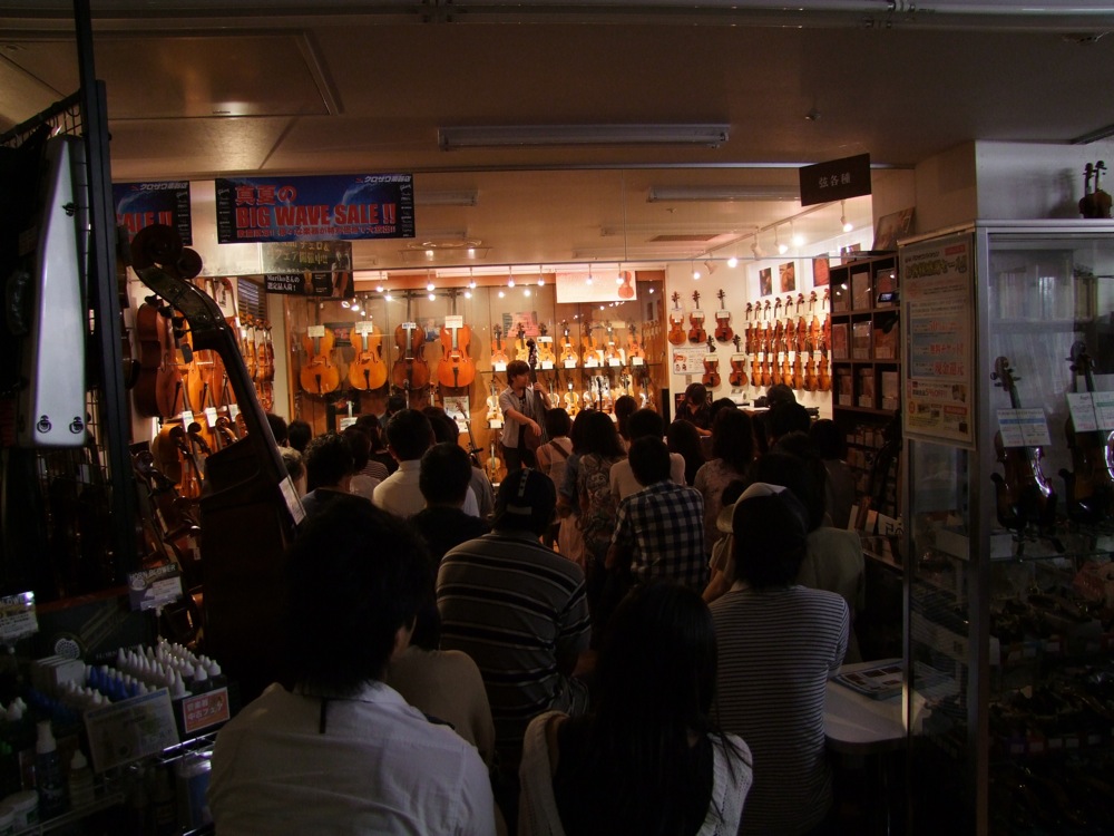 さて、最初のステージが終わり、そのまますぐに7階のクロサワ楽器店へと移動します。…と言うのも、エントランス付近ではCDの販売が出来なく、それは楽器店内で行うしかなかったからです。2階で売れればもっと良かったのですが、それは無理という事で仕方無いとして、それでも多くのお客さんが7階まで足を運んで頂けたのは嬉しかったです。そして休憩を挟み、楽器店内での2ステージ目がスタートしたのでした。
