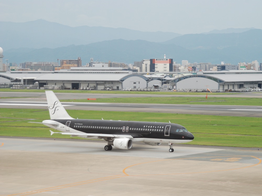 そんな時に思い出したのが、Daddy さんに呼ばれての九州ツアーが始まった当初〔竹内大輔の写真日記(~2009)、竹内大輔、北九州ツアー(2008.6.5~6.9)参照〕によく使わせて頂いた、スターフライヤーの存在でした!…2006年に新しく移転した北九州空港を拠点にし、空港開港を機会に運航を開始した航空会社で、安い割にサービスの高さが自慢です。使用機材はA320ですが、標準で170席設けられる機体に、144席しか座席を配置しない等、数字的にもゆったりとした機内が展開されているのです。