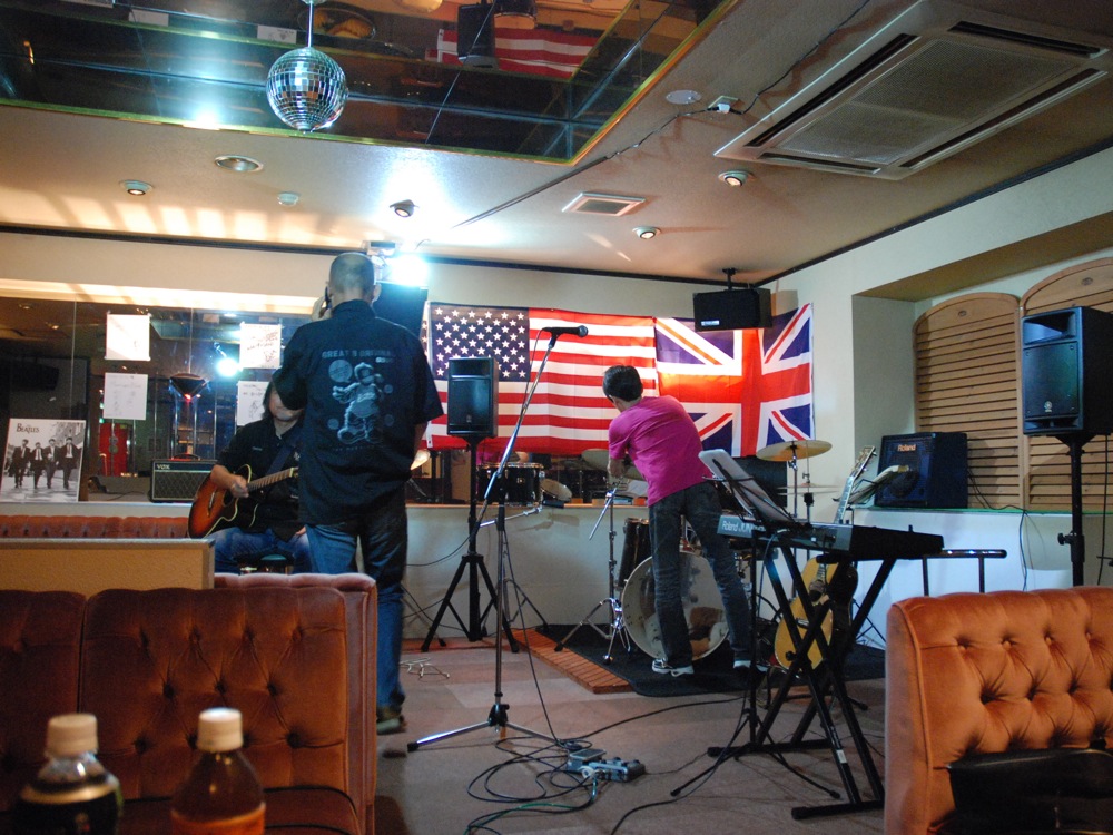さて、海老津駅に着き、Daddy さんと合流します。ここから会場までは徒歩2,3分ぐらいの距離との事で、そこで明日以降の為のリハーサルを行うとの事でした。会場と言っても、中に入るとライブ・バーみたいな所で(実際にそうでした)、実は当初は、この日の夜にここで本番が行われる予定だったのですが、明日用にお客さんを集約したいとの事で、この日はリハーサルのみになった…との事でした…(笑)。流石のスケジューリングですが、ある意味で Daddy さんらしい進行ですよね(笑)。