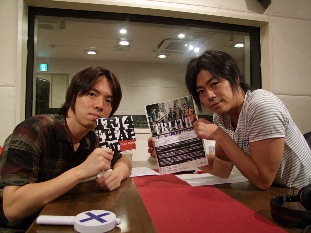 番組の内容は面白く、浪川大輔さんという方(かなり色々な役の声優をされている方です!)がパーソナリティを務めているのですが、ここに毎回“ダイスケ”という名前の人を呼び(つまり今回は自分という事です)、いきなりの初対面で、向こうも自分が何者かを全く知らされていないまま、すぐさまトークを展開させていかなければならないのです(ちなみに、番組のコーナー名は『ダイビング☆ダイスケ』というそうです…”笑)。故に最初は探り探り且つ、かなり緩々な感じの雰囲気にどうしても包まれてしまうのですが、そのまま自分の正体?も無事に明かされ、BGMとして自分の曲“New Life Standard”を、また、1曲をちゃんと流してくれる時間も存在していて、それには TRI4TH から“TRY AHEAD”を、そしてしっかりと、12月10日(月)に行われる TRI4TH のライブ〔『TRI4TH AHEAD』リリースにおけるライブスケジュール参照〕も宣伝してきました!