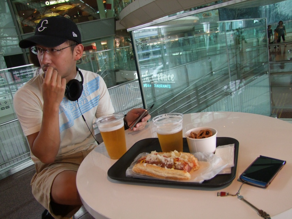 それでもやはり、個人的には緊張感のあった1日目。昨年同様、羽田空港に集合し、いつものメンバーである、ベースの池田暢夫君、ドラムの佐々木俊之さん(以下トシさん)と、飛行機のチェックインを済ませます。勿論、池田君はウッドベースを持参であり、これは預け荷物扱いになるので少々面倒ではあるのですが、昨年の経験が、事をスムーズに運ばせます。その間、自分とトシさんは、空港内で軽く1杯やるというのも、もはや定例化のように行われました(笑)。今年で最後とは思いたくないですね。