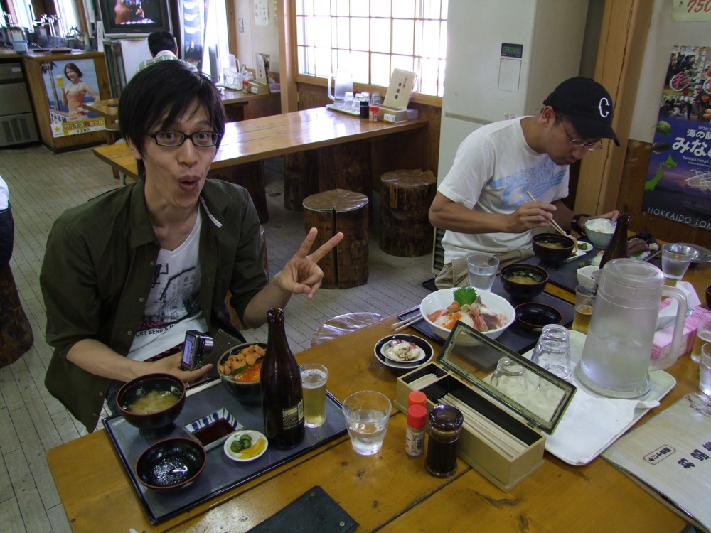 ここは千歳市から少し南下した苫小牧市にある、ぷらっとみなと市場という所で、その名も道の駅…ならぬ、海の駅…と書いてあります(笑)。建物の中は市場のように数々の食堂が入っており、自分達はその1軒に入ったのですが、早速海の幸を堪能させて頂きました。そして、ここは日本一のほっき貝の水揚げ量を誇る場所でもあるようで、そちらの注文も忘れませんでした。勿論、食事の共にはビールも忘れずに…(笑)。ああ、素晴らし過ぎる時間です。