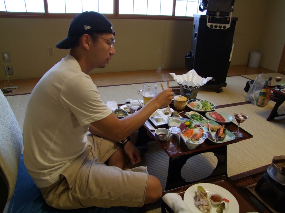 さて、ホテルに戻り、宴会の始まりです!…まさか協会の方々も、自分達がスワン・ボートに乗って洞爺湖内を漕ぎ回ってたとは思わないでしょうが(笑)、思い切り運動?した後の料理はまた格別なのです。ビールも軽々入ります。そのまま突き進み、ワインも軽々入ります!…そして勿論、日本酒も軽々…。