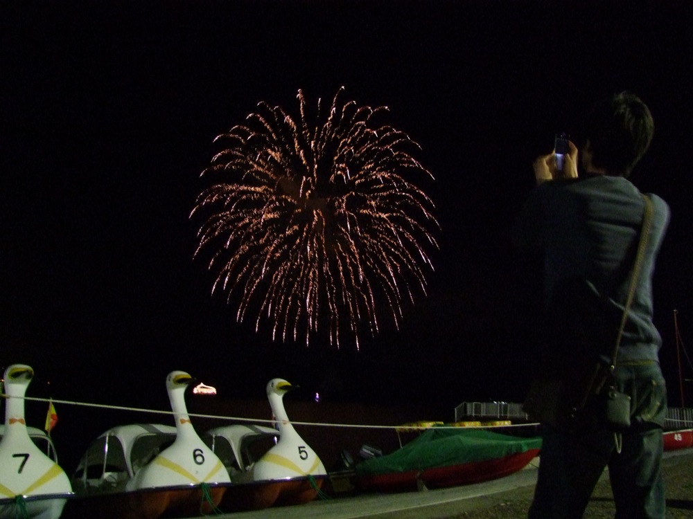 …と、ここで終わったら昨年と同じなのですが、実は洞爺湖にはロングラン花火大会というのがあり、毎年4月末から10月末まで、雨天の日以外、毎日350発程の花火が打ち上げられるそうなのです。何とも景気の良い話しですが、花火は湖上から打ち上げられるという事で、これは見に行かないわけにはいきません。いったんぶっ倒れた自分も起きまして、改めて湖畔の方へと移動していきます。時刻は20:45からという事で、気温もだいぶ下がっており(17℃ぐらいだったと思います…)、上着を着ても寒いくらいでしたが、これが酔い覚ましにも丁度良かったのです。