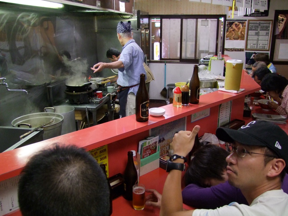 さて、眠気も幾分か収まりましたが、酔いはあまり収まらず、そしてどうもお腹の満腹状態も解消せず、うまく動けるような気がしません。しかし、誰の提案か分かりませんが、ラーメン屋に行く事になっているではありませんか!…何だか色々と心配になりましたが(笑)、とりあえず店内は入ります。なかなか渋めのお店で、それでも繁盛しているようで、雰囲気も賑やかな感じまでは覚えているのですが…。