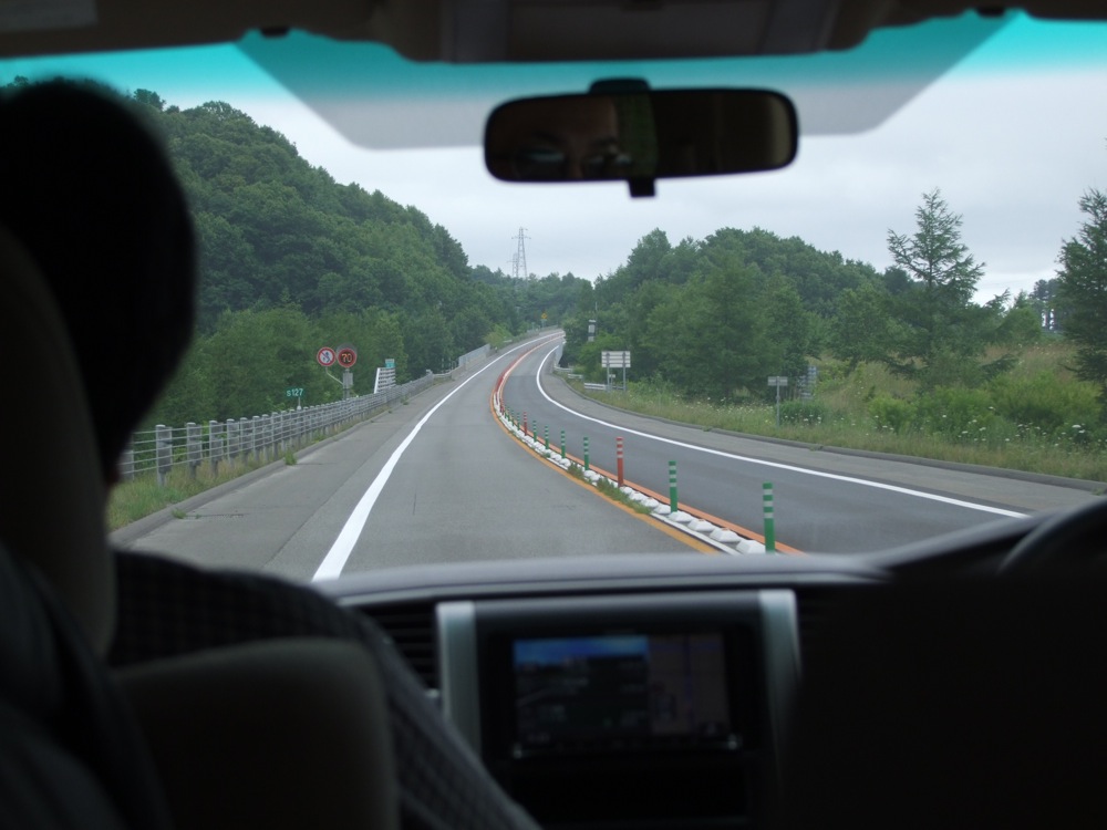 さて、お腹も満足し、このまま伊達へと車を直行させます。お腹が一杯になり、そして日も傾き始めてきたのでウトウトと…という流れも、昨年に経験したような(笑)…と思いながらも、やはり車の中では眠ってしまいました。…これがまた至福の時間でもあるのです。天気は非常に良く、今回で4回目の訪問となったトシさん曰く、今までの中で一番天気が良いかも…との事でした。確かに空は青く、日差しが強いので、それが山々を緑色に照らし、今まで以上に鮮やかに見えた景色でもありました。