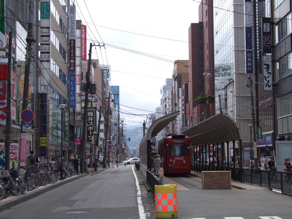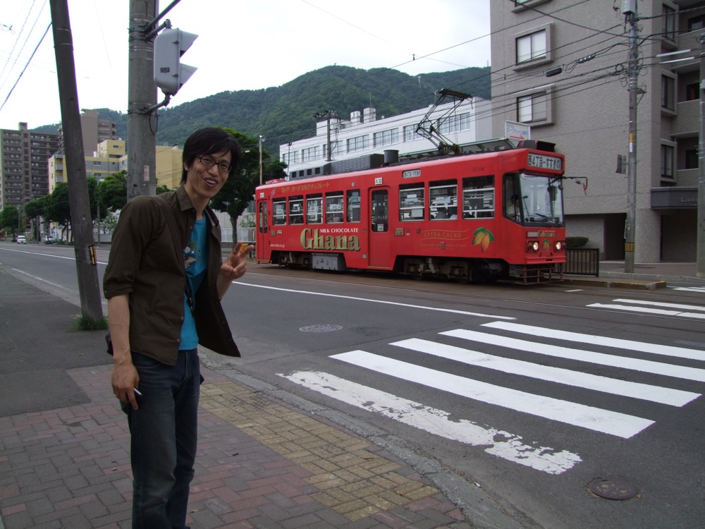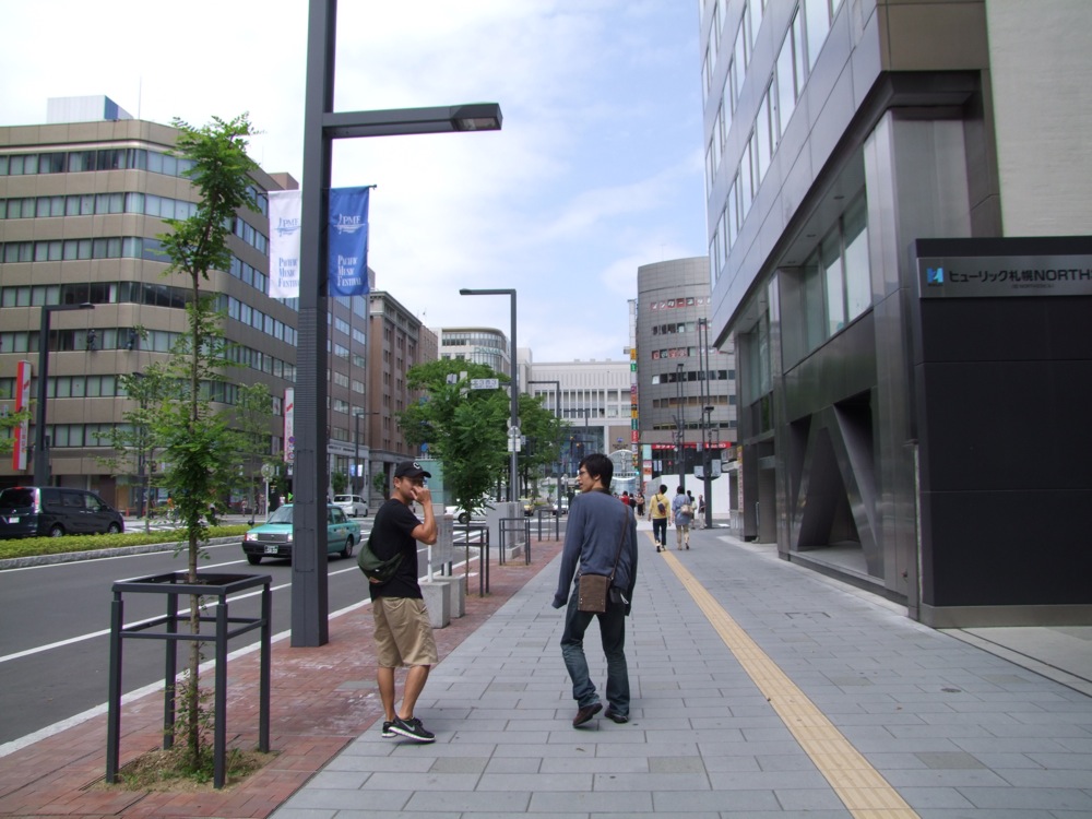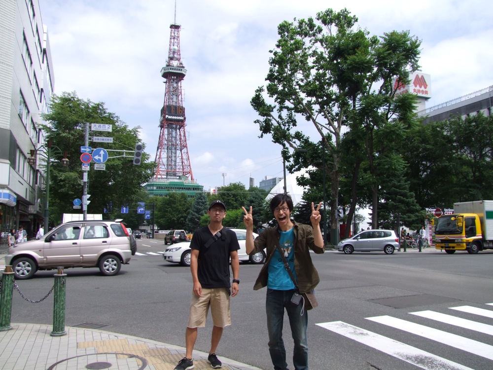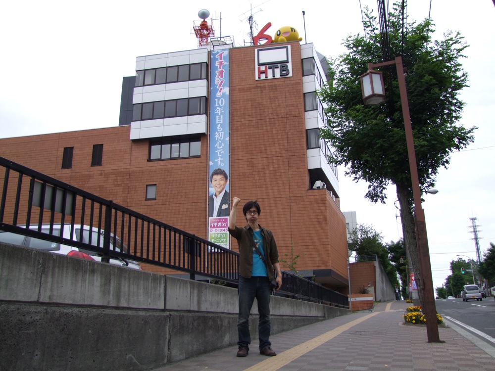…藻岩山も堪能し、今度は池田君の希望で、HTBに行ってみる事にしました。HTBとは、北海道テレビ放送の事なのですが、その中の名作番組『水曜どうでしょう』のファンであるという池田君は、是非ともそのテレビ局に足を延ばしたいとの事で、確かに、昨日も栗葉さんに場所を詳しく聞いてる姿がありました(笑)。藻岩山を下山し、市電と地下鉄を乗り継いで行ける場所ではありましたが、ルート的には若干遠回り…。直線距離にして、3~4kmという距離でもあったので、せっかくなので(健康の為!?…笑)徒歩で向かう事にしました。