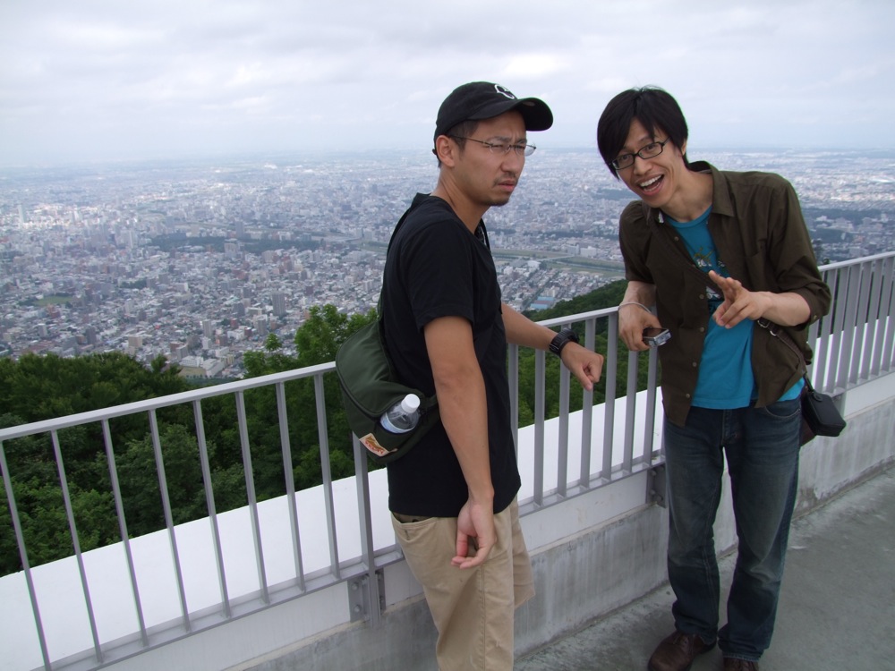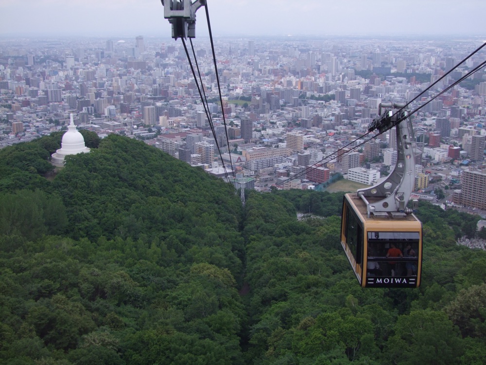 今回、1日延泊して札幌まで足を延ばしてきた自分達でしたが、当初は羊蹄山に登ろうなんて意見もあったものでした。羊蹄山は倶知安(くっちゃん)という町に位置し、その姿から蝦夷富士とも言われている山ですが、それ故に標高は約1900mもある、なかなか凛々しい山です。対して、こちらの藻岩山の標高は531m…。約450mの高さまではロープウェイで移動し、そこからは一応、歩いて山頂付近の展望台まで向かったわけですが、この時点で既にバテている自分達…。目的地を札幌にして本当に良かったと、改めて思った次第でした(笑)。