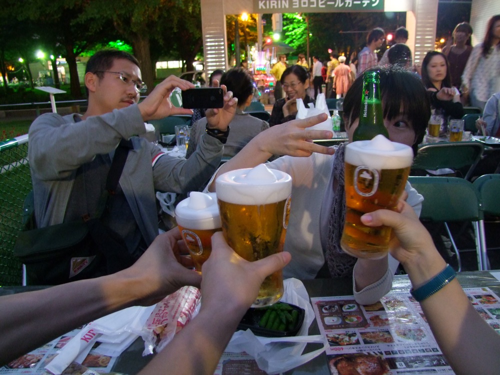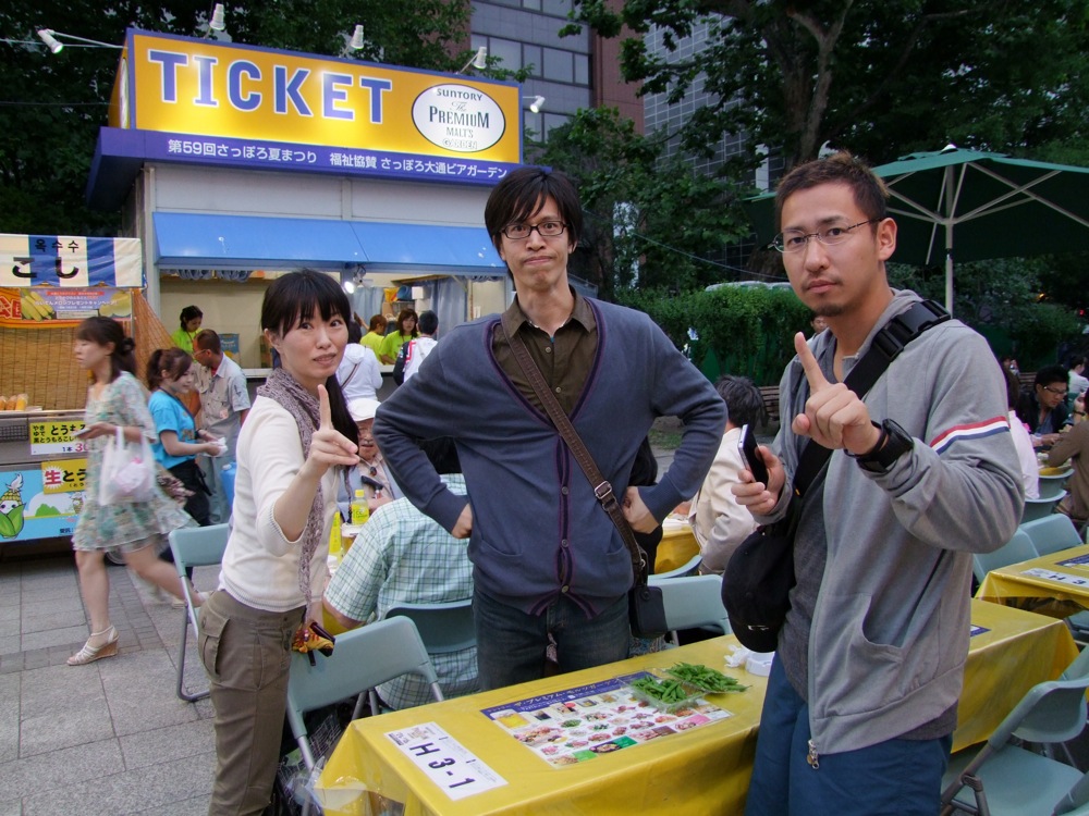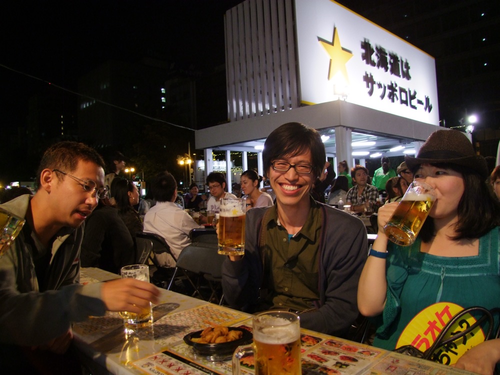 ここでもう1人、昨年の伊達でのライブの司会を務めてくれた成田理奈さんも加わり、全5人での行程となりました。成田さんは札幌在住でもあるので、このビアガーデンの事も知っていたようでしたが、実際に会場で飲むのは初めてとの事…。意外に、地元の方というのは来なかったりするのかもしれませんね。