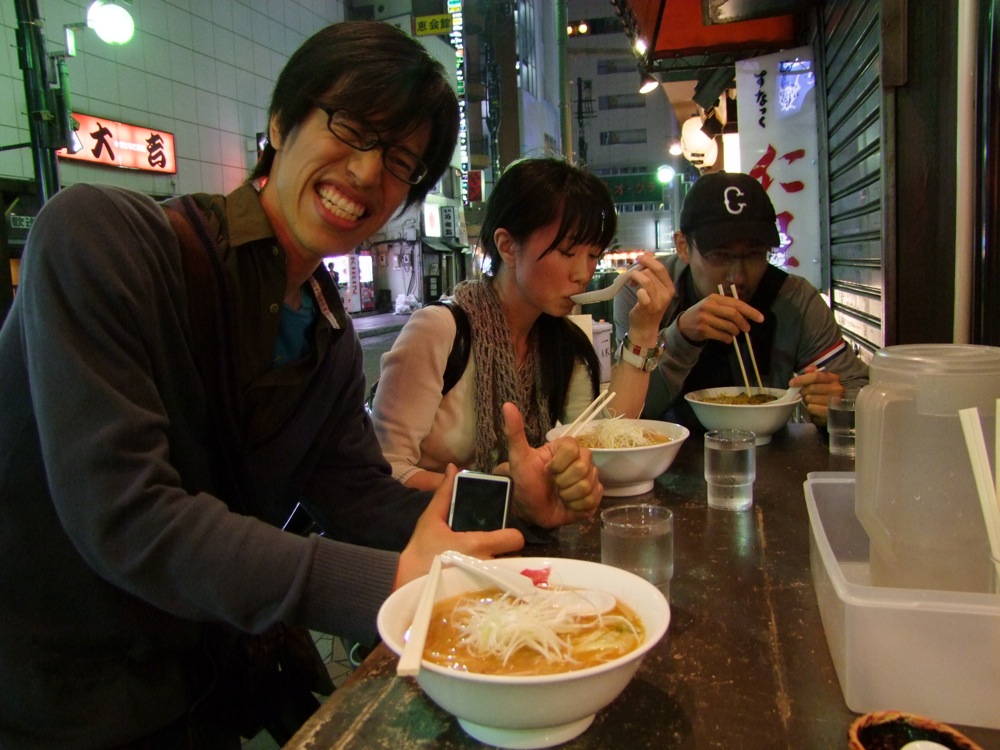 伊達からやってきた自分達から見ると、札幌は北海道と言えど、やはり大都市!…という印象に繋がります。札幌に着いたのはお昼頃でしたが、ひとまず小腹が空いてきたので、JR札幌駅ビルに入っている、“札幌らーめん共和国”というエリアで軽く腹ごしらえ…。恐らくこの日は街を練り歩く事になると思うので、スタミナ作りは必至だったわけです(笑)。
