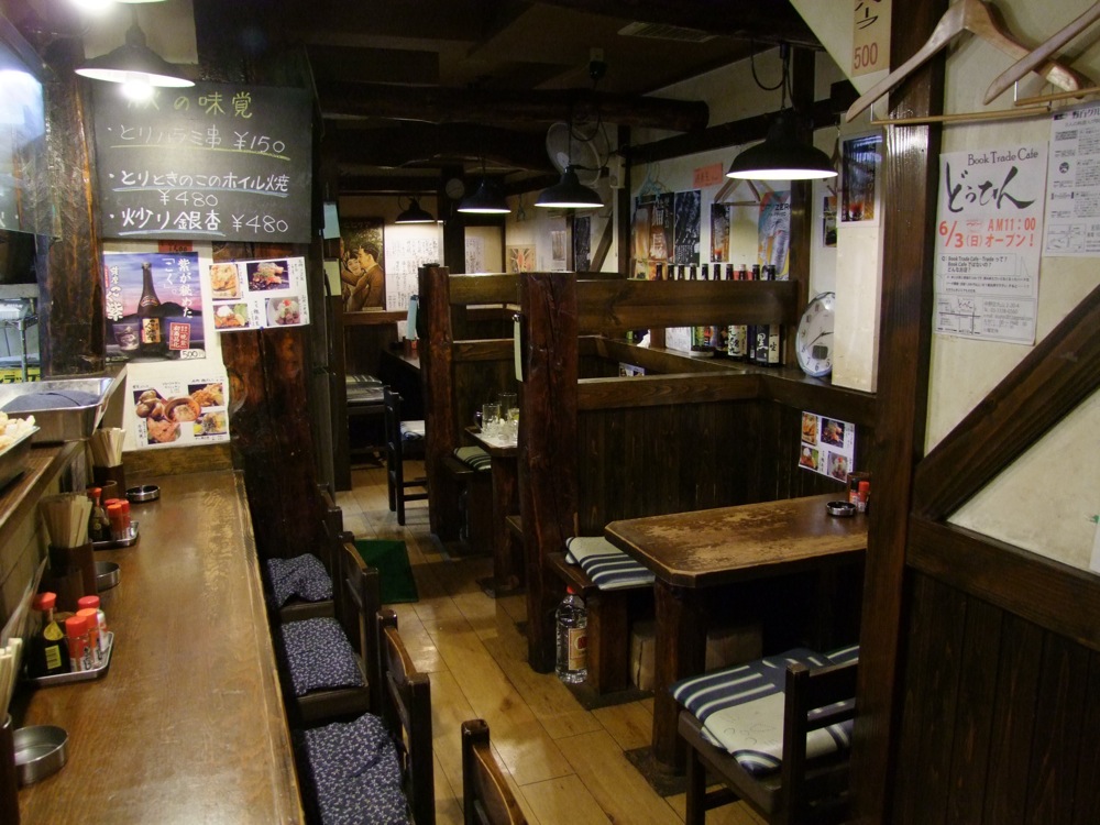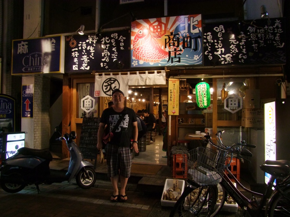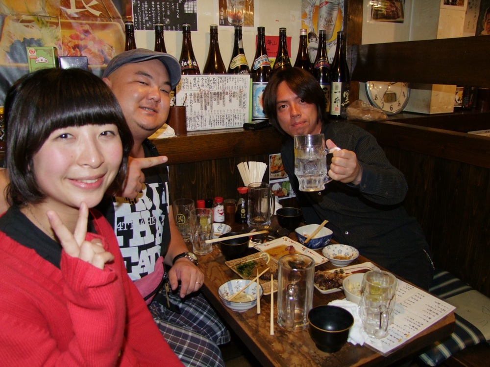 当初、織田夫妻が住む練馬近辺にしようと、色々なお店をあたってみたのですが、お客が沢山で入れなかったり、クローズが思ったより早かった等、なかなかお目当てのお店が見付けられないでいました(左上の写真は、結局入れなかった練馬のお店の前にて…笑)。…そんな時、実は第一候補に決めていたという、野方のお店の提案が織田君から出され、一路タクシーで野方へ向かったのです。