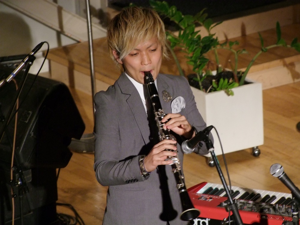 そして、ライブは始まりました。お店は既にお客さんはで一杯になっていて、JABBERLOOP、そしてシカキムの人気の高さを窺えるというものです。シカキムは、カルメラのメンバーであるサックスの辻本美博君と、キーボードの PAKshin 君の2人組で、この時は辻本君はクラリネットで演奏をしていました。やる曲は、オリジナルは勿論ですが、スタンダード曲も何曲か演奏していまして、カルメラとは違った世界観を披露してくれていました。むしろ、自分達はカルメラのような音楽感をイメージしていただけに、正直、やられた!…と思いましたね(笑)。いつもは激しい音楽ですが、この時は甘い雰囲気と言いますか、完璧に異なったカラーで勝負していましたし、その中にも、内に秘めたる熱さみたいのも感じて、やはりカルメラらしい一面もあるのかと思ったりしつつ、楽しい時間だったと思います。
