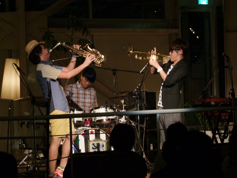 お客さんとの会話…というのは、言葉に出すものではなく、こちら側が音を出した時に応えてくれる、客席側からの空気感…とでも言いましょうか。抽象的で、なかなか説明し辛い部分ではあるのですが(笑)、確かにこの時に感じたものはそうでした。それはそのまま、自分達の演奏の幅へと繋がっていきます。こちら側も勿論言葉には出していませんが、音で会話をしているというのは、正にそういう事なのだと思いました。楽しい時間ではありませんか。