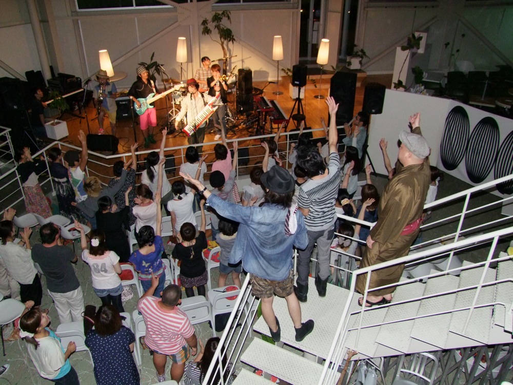 JABBERLOOP はクラブ・ジャズ・バンドですが、そのオリジナル曲はポップスをも意識させるもので、特にメロディは一度聴いたら忘れなくなるぐらい、キャッチーでインパクトを残すものだと思います。それは初めての地で強力な武器となり、既に1曲目からお客さんを虜にしている感じがありました。そして、ただ聴かせるだけではなくて、適度に手拍子や掛け声等も促したりして、曲に参加させている状況にしてしまうのです。それは客観的に見たら、お客さん皆が既に JABBERLOOP の曲を知っているのではないかと思うくらいで(笑)、改めて凄いバンドだと思いました。自分達とは少し方向性は異なるのかもしれませんが、当然、大いに参考にしたい事なのです。