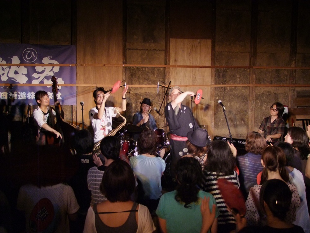 そして、この地でも“祭り”の時間がやってきました(笑)。ライブ会場の雰囲気からしても、その状況はハマり過ぎていて楽しくなりましたが(笑)、より生き生きとした空間が作り出せていたような気がします。自分達も客席の後ろの方で応戦していましたし、正に蔵の中が一体感で包まれた瞬間でした。自分達も…負けてはいられません!