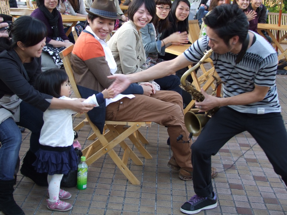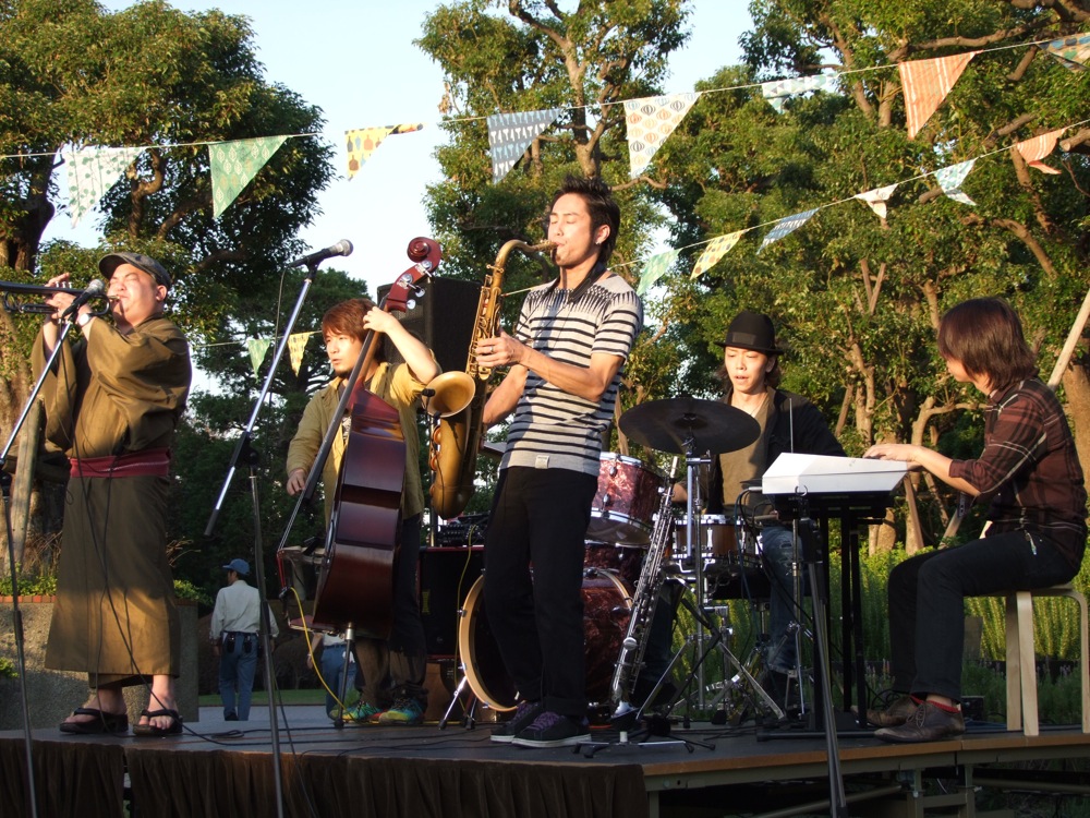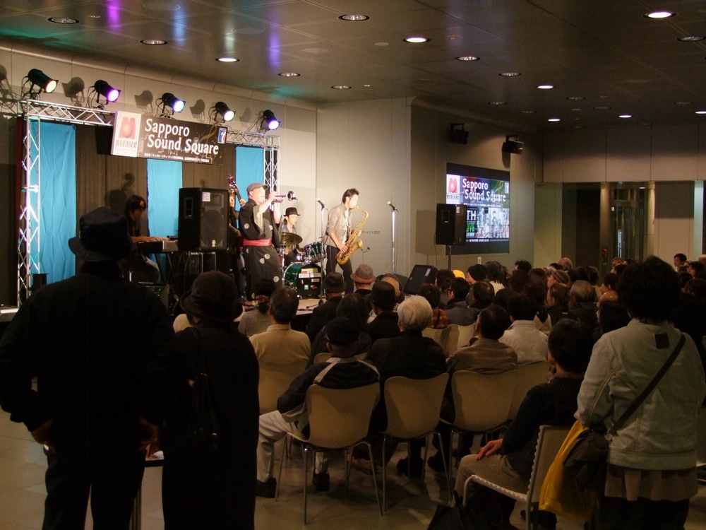 与えられた時間は約30分でしたが、そもそも時間が押していたので、選曲は(曲数も含め)直前まで悩まされたものでしたが、思い切って5曲出来たのは良かったです。自分達は札幌からのライブを含めると、地下という場所の特設ステージで演奏、ホテル内のレストラン・スペースをクラブ風にアレンジしたステージで演奏、そして今回のデパートの屋上での演奏…と、環境的にもかなり異なった場所での演奏が連続して行われてきました。