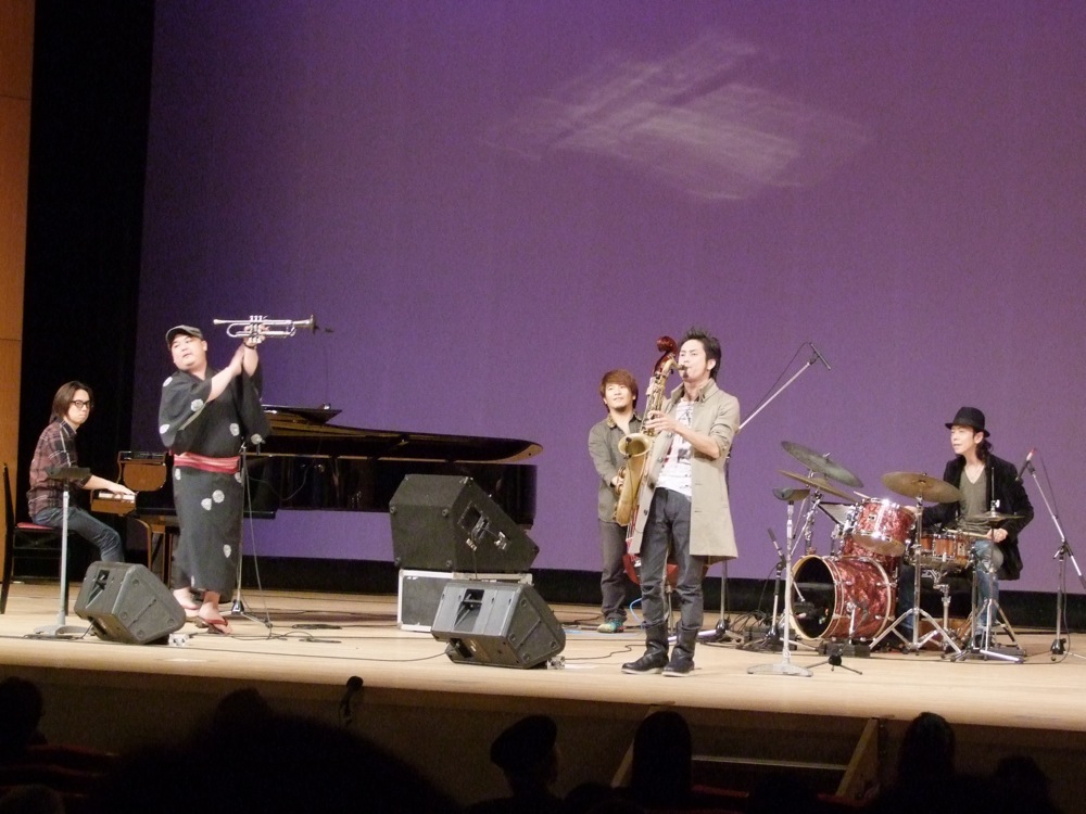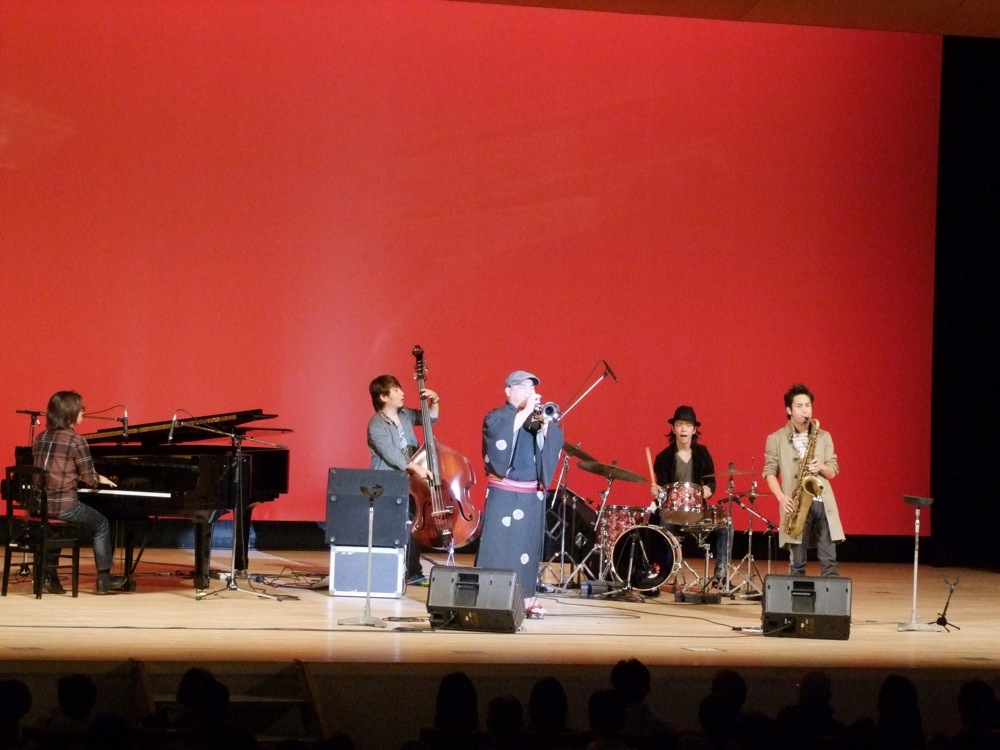 そして、自分達の出番がやってきました。今回は35分の演奏時間が与えられていましたが、その中で6曲の曲目を演奏しました。普段の自分達の演奏時間から言うと、6曲というのは時間をオーバーするのではないかと冷や冷やしたものでしたが(笑)、少しだけコンパクトに演奏する事を意識しつつ進めていきました。“New Life Standard”ではベースのソロを省略し、久し振りの“Rainy Holiday”では、ソロはトランペットが行う等、いつもとは違う進行も入れつつ、新鮮味も随所に出していきます。