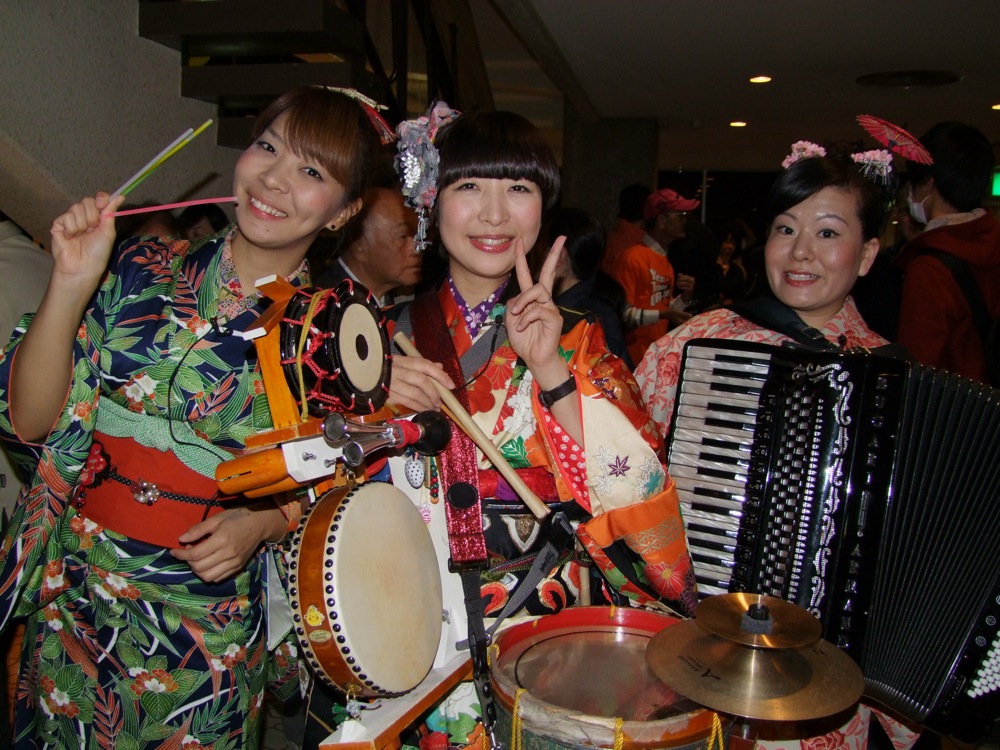 …そうこうしている内に、開演の時間になってしまいました。実は今回は、時間が相当タイトな事になっていて、それぞれの出番は正に分単位で予定が組まれていて、自分達 TRI4TH の出番も14:58から始まる休憩後の、15:18からの出番…という事になっていました(笑)。その間、オリパパの挨拶があったり、シニアバンドの皆さんの演奏があったり、それぞれのステージ演奏の間を繋ぐ、ちんどんバンド☆ざくろの皆さんによる賑やかし演奏も盛り込まれたりと、会場内は常に変化がある段取りになっています。そしてホールのロビーでは、おかしさんによるお菓子の販売も行われている等、本当に多くの方が関わっているというのがよく分かる内容になっていたのです。確かにこれが“まつり”と言えるものなのかもしれませんが、これもオリパパの人柄によるものでしょう…。自分達がゲストとして呼んで貰えているのも、実の息子という関係はあるものの(笑)、本当に有難い事なのでした。