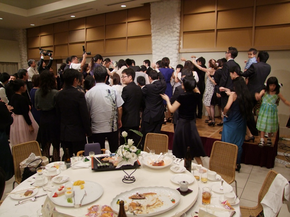 披露宴開会の前に既にお酒が振る舞われていたり、最後には皆でカチャーシーが行われる等、随所に見所が満点で、そして新郎新婦の人柄が表れた和やかな披露宴でした。その次の日には、西仲さんの地元である、うるま市の平敷屋という場所の公民館で行われたライブがあり、こちらには地元の方々を中心に、多くのお客さんにお越し頂けました。今回は、CD『あかなばなーのうた』のリリース・ツアー、沖縄編…という感じでお送りしていったわけですが、この日だけで一気に50枚以上も売れるなど、やはり地元の強さを感じたものでした。