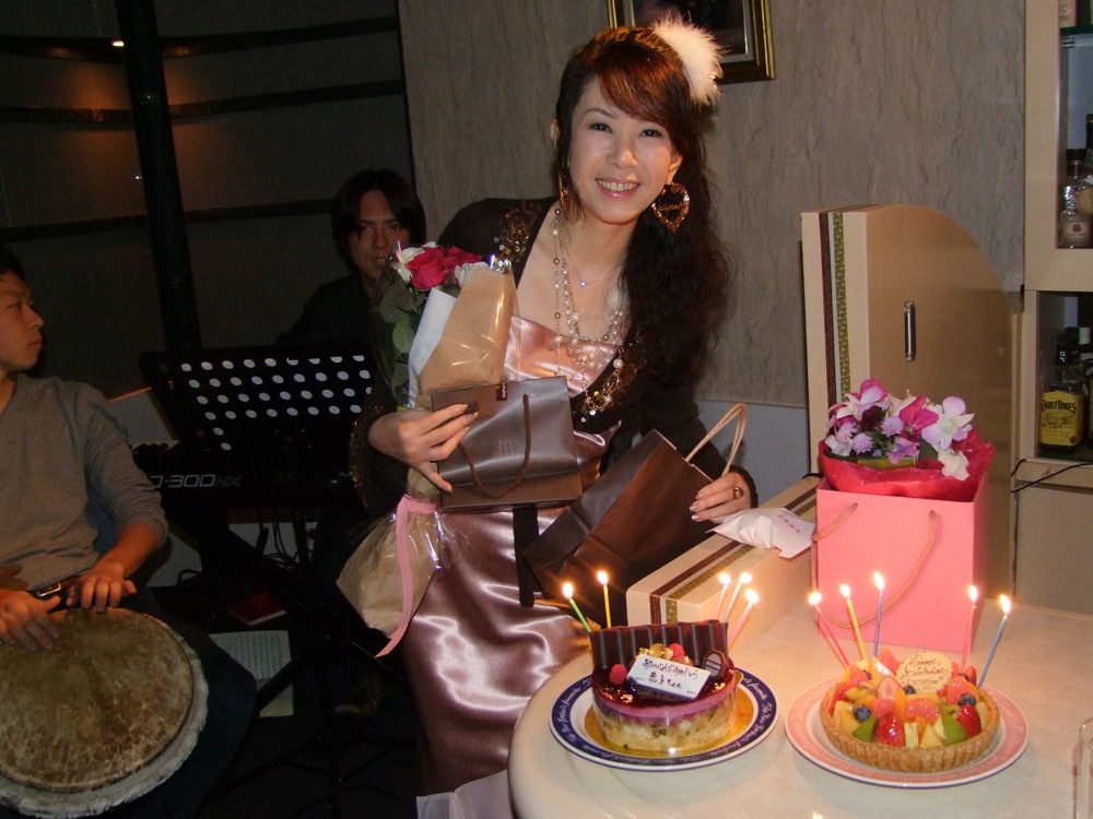 こうして無事に恭子さんのバースデー・ライブは終了したわけですが、聞くと、ミキヤは丁度現在、テスト期間中と言うではないですか。この日が現代社会で、この次の日には数学(ミキヤが苦手な教科である事を自分は知っています…笑)が控えているのだとか…。何という状況で赤坂にやって来たのでしょうか。数学のテストの結果を聞くのが怖いですね(笑)。…まあ、これに懲りずに、また演奏に参加して貰いたいものです。そして、恒例になっていったら面白いですよね。その頃はテストを気にしないでステージに立てたらと思います。…という事で改めまして恭子さん、誕生日おめでとうございました!