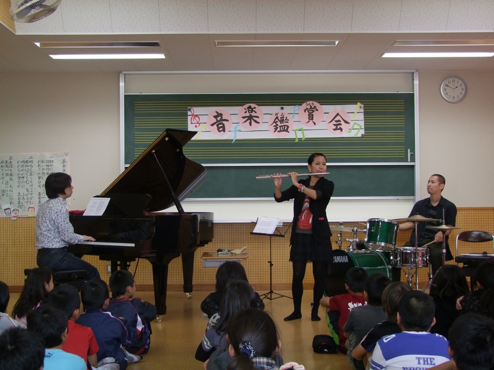 学校訪問では、それぞれの学校(今回、3校に足を運びました)の校歌をジャズ風にアレンジしたものを演奏したり、クリスマスの曲を演奏したり、途中には楽器紹介の時間を設けたりしてみました。そしてディナーショーでは、石垣島のボーカリスト、国吉なおみさんとの再共演もありつつ、豪華な編成で楽しみました。