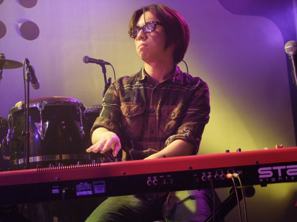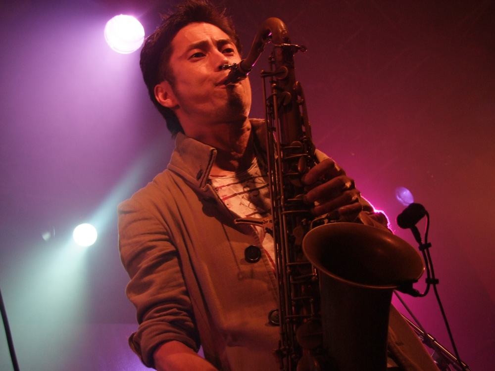 最初に演奏したのは、お馴染みの“Sunlight Yellow Over Drive”…かと思いきや、イントロを掻き回したその瞬間、織田、藤田の2フロントによる、お客さんへの(自分達への…でもあったのかも…)掛け声を挟み、すぐに次の曲、“Night Hawks”に突入するではないですか。こちらは心地良いテンポのジャズ風ナンバー。クラブというこの場所で演奏するのは、普通に考えたら珍しいのかもしれませんが、それがクラブ・ジャズ・バンドの中の TRI4TH の特徴でもあり、魅力だとも思うのです。ある意味で“ジャズ”というものに真っ向から勝負しているとも言え、これは今後もブレずにやっていきたい特徴にしていきたいものでした。