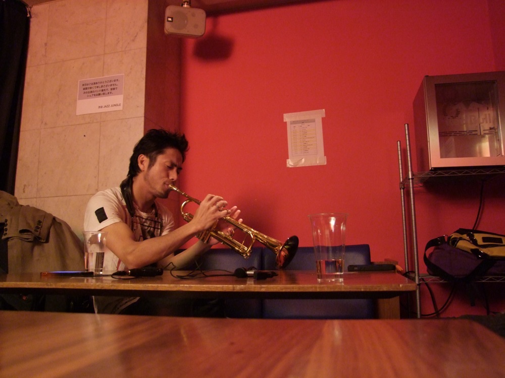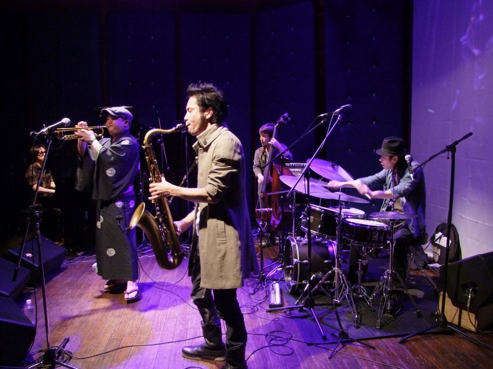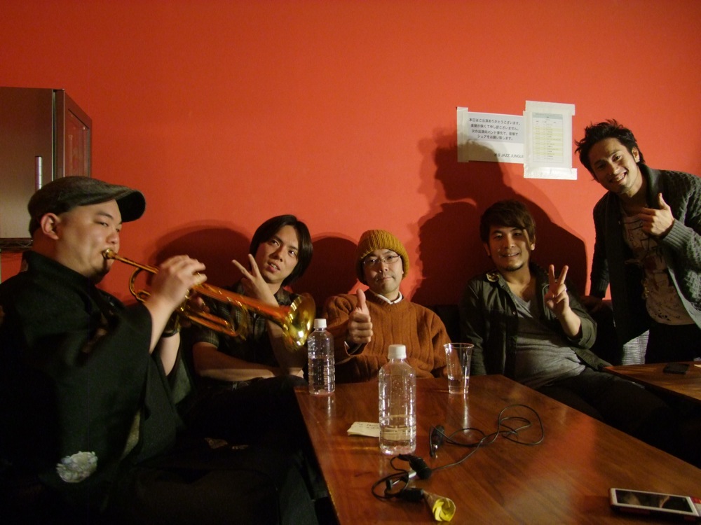 そんな中、自分達の出番は20:00~と、わりと前半戦でのライブ開始となりました。全体的な順番は2バンド目で、Re-Trick というピアノトリオ編成のバンドの次でした。つまりは、この場で初めて、管楽器奏者のバンドの演奏が行わるという事です。迫力をモットーに、2012年で培ったものを全て解き放つ感じで進めていきたいものです。