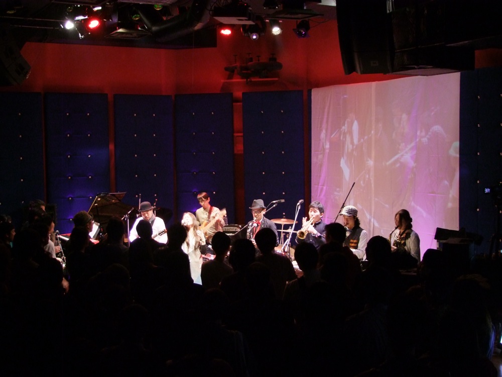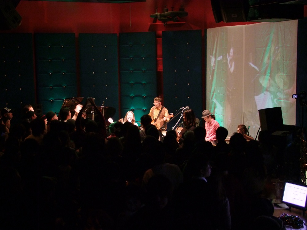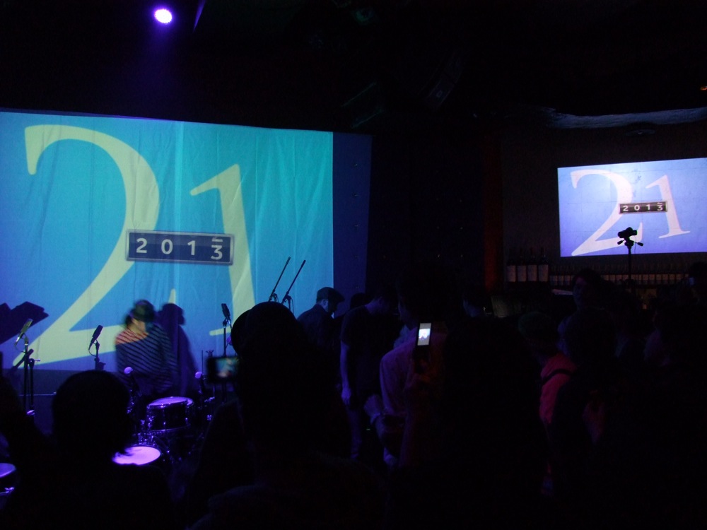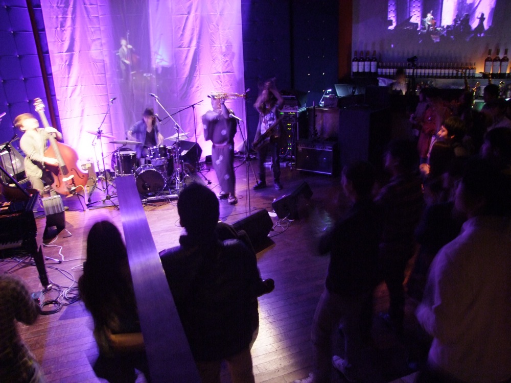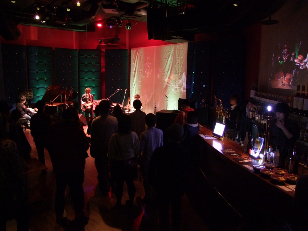 …そして、この後にも続々と出演するバンドのライブを見ながら、勿論、合間にお酒でも頂きながら(笑)過ごす年越しというのもまた一興なのでした。ヤセイ・コレクティブ&Za FeeDo という、2つのバンドのコラボ・ライブから、久し振りに出くわした、ベースの田中啓介さんが参加しているモダーン今夜、そして Immigrant's Bossa Band 等、個性的で洗練されたサウンドの波に呑まれていきます。このイベントは Jazz Jungle という名前ですが、正に音楽の、ジャズの密林に迷い込んだような、そんな雰囲気が流れていたように思います。そして、お客さんもいつの間に、どんどん増えていっていたのです。