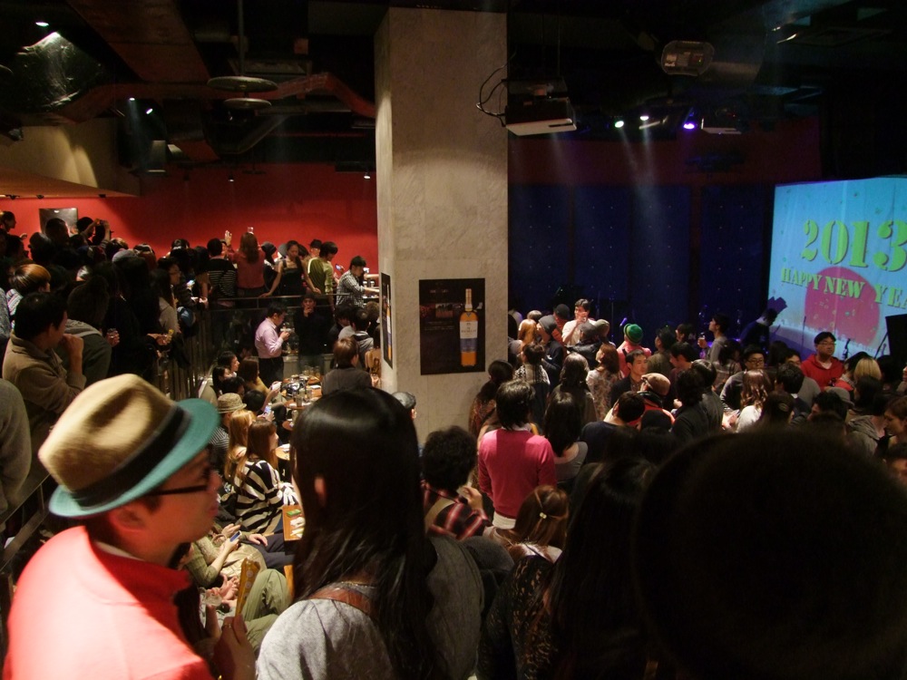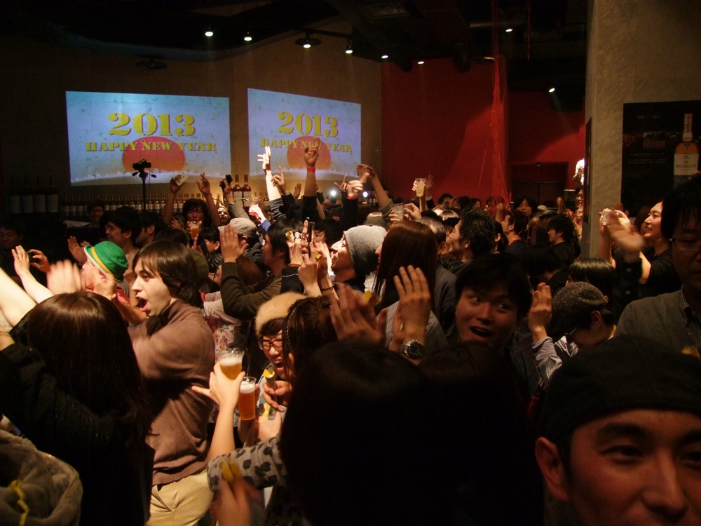 徐々にその数字は減っていき、20を切った辺りから、皆で数字のカウント・ダウンが始まりました。…こうしてみると、最後の60秒が2012年で一番長く感じたものでしたが(笑)、その数字が0になり、同時に2013年が始まりました!…皆で「明けましておめでとう!」の声と、どこかでクラッカーも鳴り響き、会場は正に謹賀新年の一色でした。周りは面識無い方達ばかりでしたが、色々なところで「おめでとうございます。」、「よろしくお願いします。」の挨拶が交わされ、何だか良い空間だなとも思ったりしたものでした。