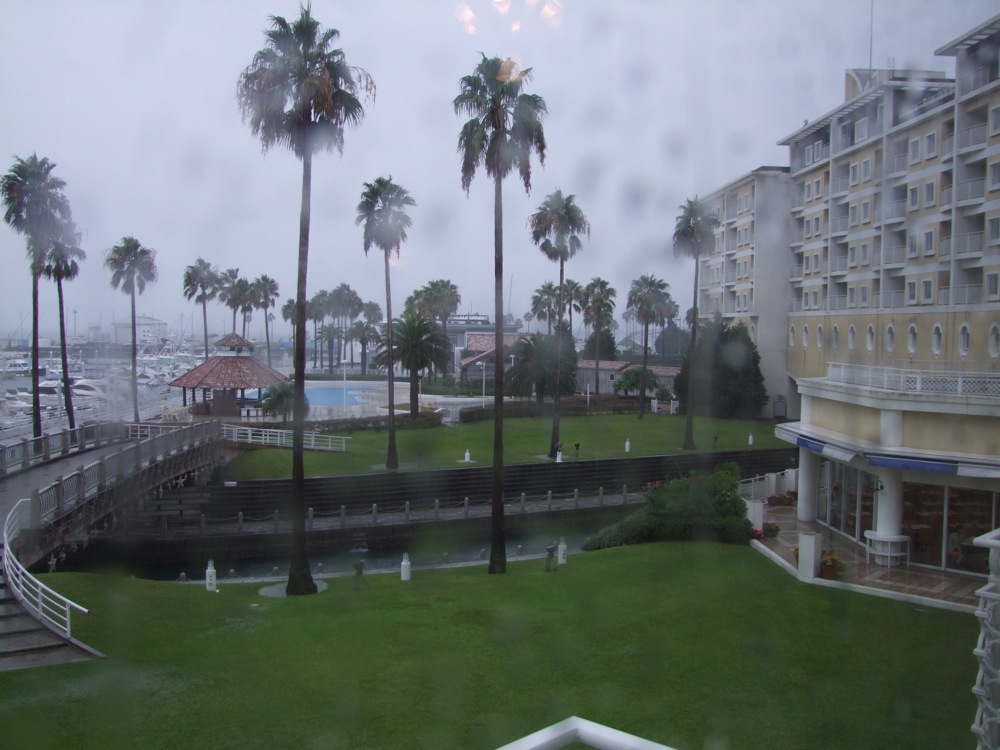 空港ではアテンドの方(この方も麗澤の卒業生でした)がいらしていて、その方の車で麗澤会が行われる場所まで移動していきました。空港から40~50分程の道のりだったでしょうか。海南市にある和歌山マリーナシティという、橋で繋がっている小さな島のような所に入り、そこに位置するロイヤルパインズホテルという所が、今回の演奏場所との事でした。ここで自分達も宿泊させて頂けるという事で、大変有難い話しですが、リゾート地の雰囲気が全面に出ているだけに、天候だけが悔やまれます。周りにはヨット・ハーバー、そしてポルト・ヨーロッパというテーマパークもありまして、この島全体が観光地になっているのだと思いました。