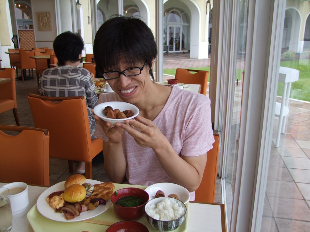 さて、この日の朝は早かったです…。会自体が昼前から始まるので、それ用のリハーサルは、それ以前に終わらせなければならず、朝の9:00に会場集合というものでした。しかし、会場に着くと既にセッティングは出来ており、他のスタッフの方の行動力には恐れ入りましたが、とにかく無事にリハーサルは終了し、やっと朝御飯にありつけました。外は既に雨が強く降っており、台風が近付いているのだと感じさせてくれましたが、それよりも朝食のバイキング形式の中に、梅干しが数種類あって、それが選びたい放題というのが驚きました。成程、ここは和歌山県なのだと思わせますが、何だか贅沢な朝食だなとも思ったものです。