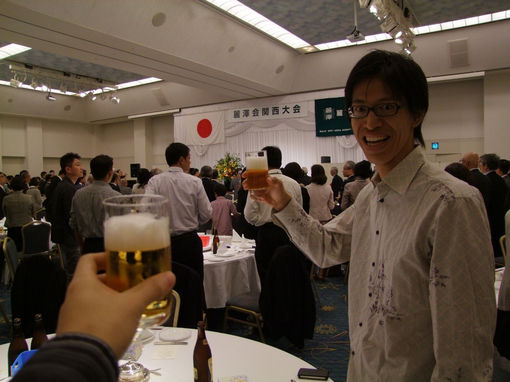 そしてお昼前になり、いよいよ麗澤会関西大会が開催されました。悪天候にも関わらず、かなり多くの方がいらっしゃっていて、第○期等のテーブルが沢山用意され、これは予想以上の盛大なパーティーである事が窺えるというものでした。