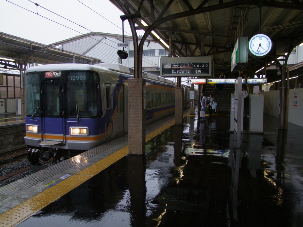 途中の尾崎駅からは徐行を解かれたものの、他の電車との遅れの兼ね合いがあるのか、軽快なスピード…というわけにはいかず、それでも徐々に大阪に近付いてはきました…。そして、泉佐野駅、貝塚駅辺りになると、だいぶ景色も都会的になってきて、通常通りの走行へと戻ってきました。外を見てみると、雨風もピークを過ぎたのか、だんだん街が活気付いて見えてくるようになってきたのですから不思議です。既に空は暗くなってきており、電車を乗り継いで新大阪駅に着けたのは19:00頃になっていました。