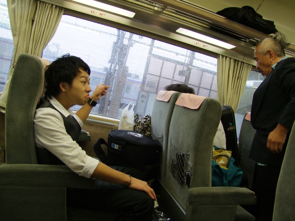 道中はのんびり…と言うと、実はそんな事は全然無く、むしろ、やらなければいけない事が沢山ありました。…というのは、東京到着後に控えているリハーサルの件です。この日までに自分達は譜面を作ってこなければならず、あと3、4曲程残っていたのですが、本来、この前日に自宅に帰れる事を想定して予定を組んでいたので、この新幹線の車内で採譜をせざるを得なかったのです(…かと言って、昨日の大阪探索を削るわけにもいかなかったのです…笑)。