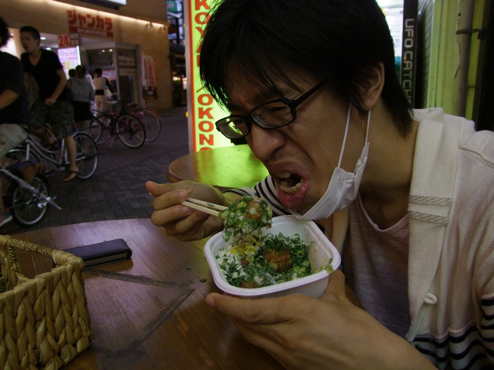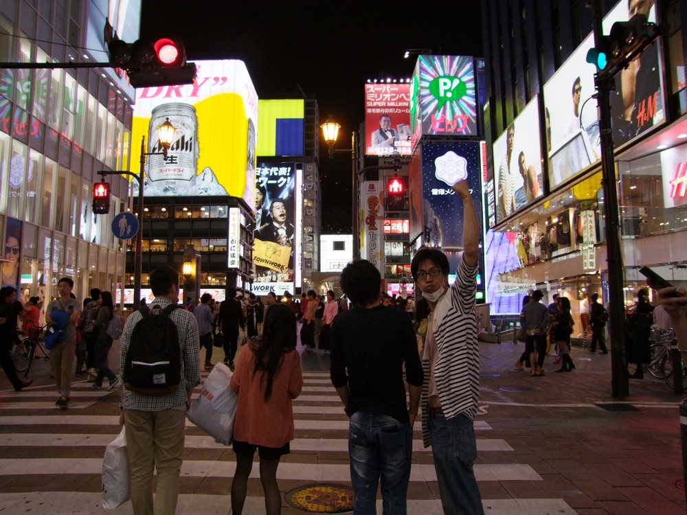 しかし、宿が決まればこちらのものです。この日の宿は、なるべく安く…と、西中島南方という場所でのホテルを選ばせて頂きましたが、チェックインした時点で夜の20:00…。まだまだこの日の時間は残っているではないですか。これはもう、残りの時間で大阪の街を堪能するしかないでしょう(笑)。早速、池田君とミキヤとの3人で、夜の大阪へと繰り出したのでした(伊藤さんと奥さんは…ホテルに居残っていました…勿体無い…笑)。