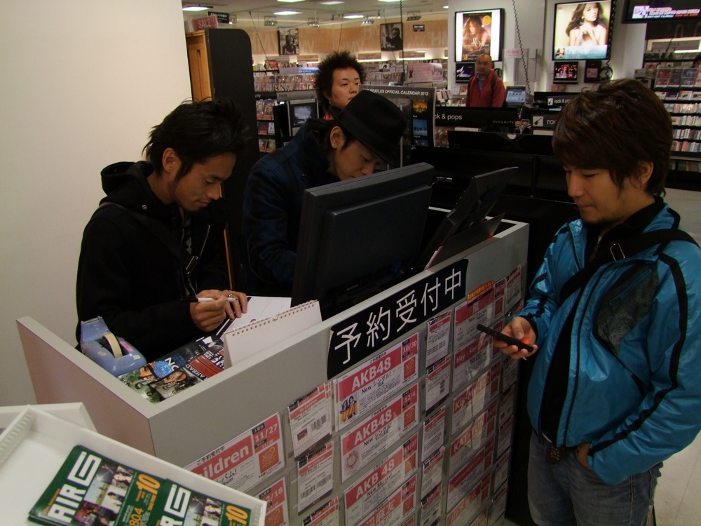 さて、そんな中、自分達はCDショップへの挨拶回りも行ってきました。今回、TRI4TH が発売した『TRI4TH AHEAD』は、それこそ全国のCDショップで置いて下さっている(筈…笑)ので、その確認と、やはり置いて下さった担当の方には、しっかりとお礼と挨拶はしておきたいところでした。それこそ何件が回りましたが、確認出来た所もあれば、なかなか見付けられない所もあり、やはり色々と苦労はさせられます。しかし、中には好意を持って受け答えして頂けたお店もあり、本当に嬉しかったです。メッセージやサイン等を添えつつ、札幌に感謝の気持ちで一杯になった瞬間でもありました。