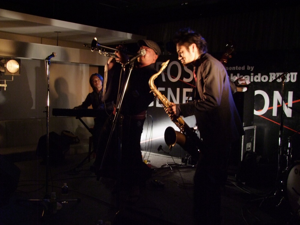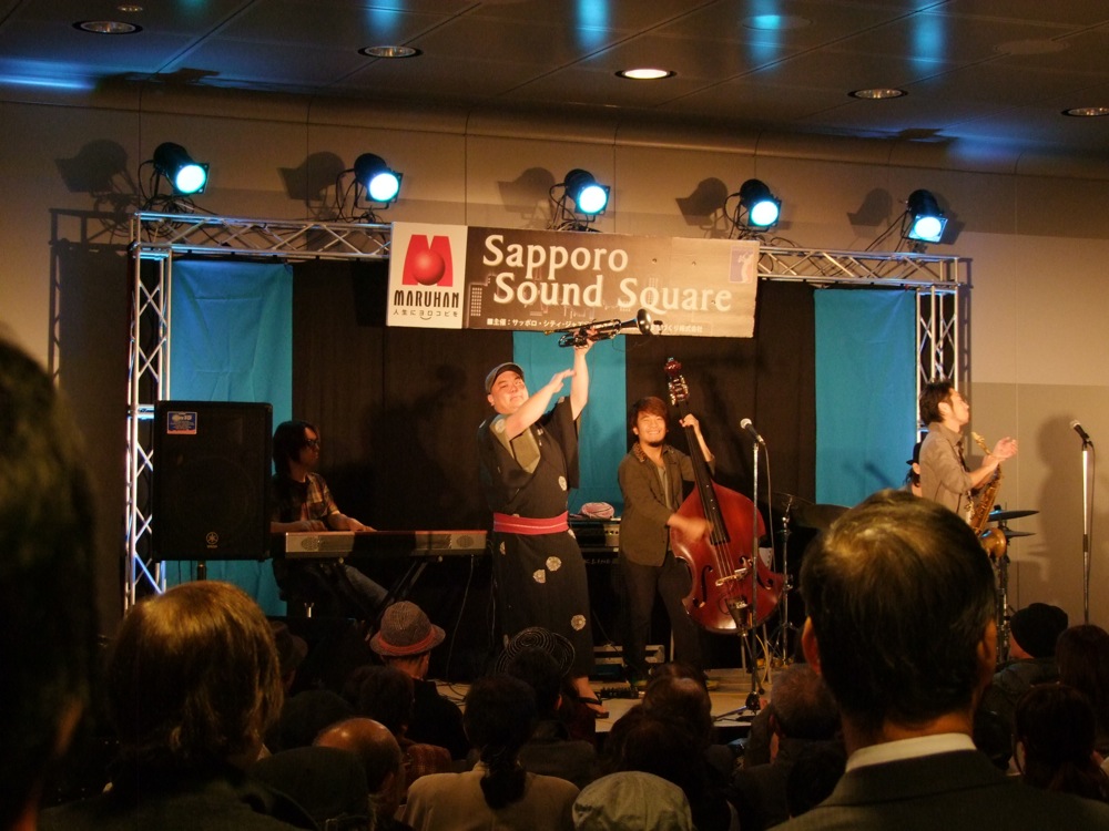 こちらのステージは約1時間に設定されたので、たっぷりと自分達の音楽をお届けする事が出来ました。ジャズの部分、ダンサブルな部分、そして、自分達の人間性の部分(笑)…と、正にありとあらゆる側面です。皆、本当に楽しんでくれたようで、アンコールもして頂き、そしてその後の会場での、パーティーさながらの時間も一緒になって過ごしました。多くの方とお話しさせて頂きましたが、それだけこのイベントには多くの方が関わっているという事でしょう、改めて今回の機会を与えて下さって感謝すると共に、また一緒になって盛り上がっていければと思いました。札幌という、なかなか東京からは簡単には行けない場所で、こういった演奏が行われた事は、本当に大事にしたいものです。そして、ますます熱いライブをお届けしたい気持ちで一杯になりましたね。
