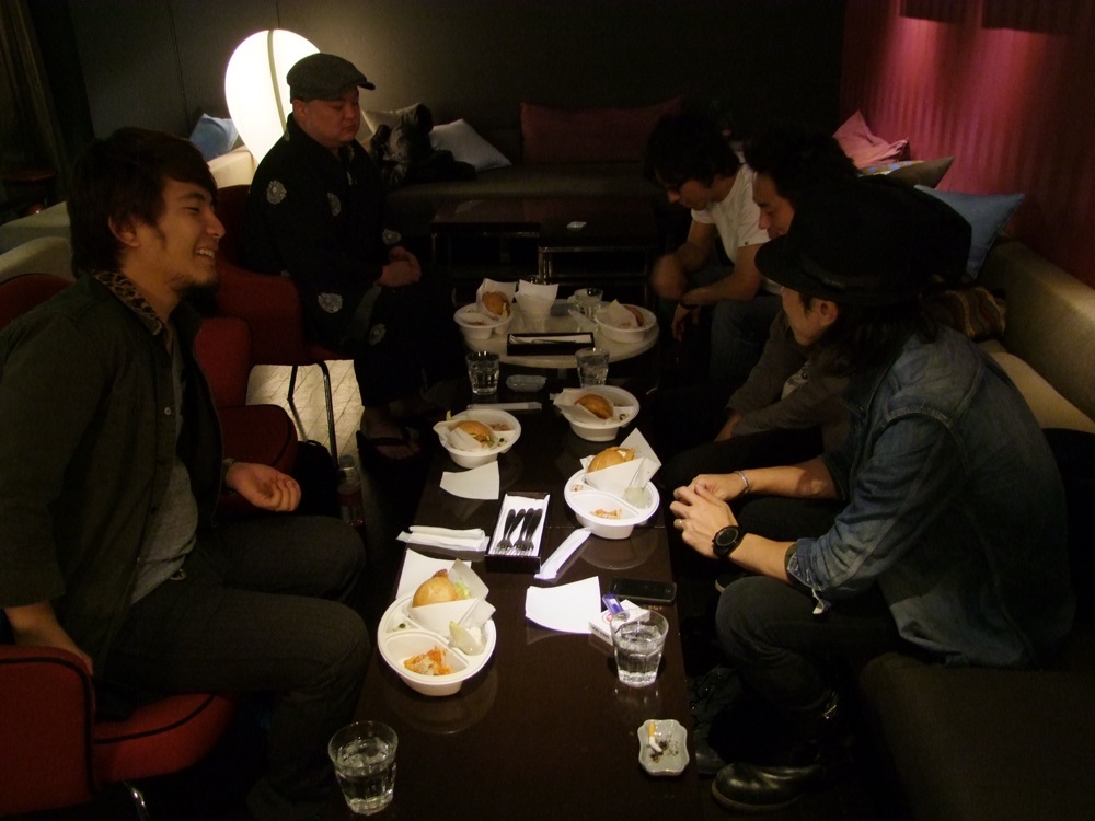 思い返せば TRI4TH として、ここまでガツンと食べて、ガツンとメンバー一同で飲んだのは初めてだったのではないでしょうか。過去にも、ツアー中でライブ後に打ち上げ…とかはありましたが、大体は次の日の朝の移動が早かったりとかで、どこまで本気で飲めていたか…と言うと、少々微妙なところではあったかもしれないのです。しかし、この時の次の日の予定は、昼以降である事は決まっていましたし、何より地方に皆で呼ばれて来ている…というこの状況に、皆一致でテンションが上がりまくっていたのでしょう。とにかく楽しく、良い意味でハッチャケられた時間でもありました。何だかよく分かりませんが、次の日は良い演奏が出来そうだという自信が湧いてきたものでしたから…(笑)。思い思いに騒げた札幌の1日目…。楽しい2日目に繋がらせたいものでした。