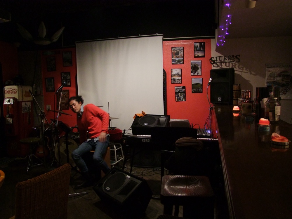 さて、そんな Sturgis でのライブでしたが、当日はナオキさんがカホンを忘れ、家まで取りに帰らずを得なかった状況もあり(笑)、リハーサルは殆ど出来ず、ナオキさんがお店に来て間も無く本番は始まった感じでした。まあ、いつもの事でもあるので(笑)大して慌てるわけでもありませんでしたが、流石に最初のステージはバタバタ感は否めない感じでした。それでも、すぐにナオキさん自身のペースに持っていくのは流石と言えるでしょう。一瞬の内にいつもの雰囲気に持っていき、多くのお客さんを魅了していきます。曲もその場で決め、実は曲の内容も即興の内に、その場で作っていっている感じがあるのですが、それがまた臨場感があって良いのです。自分達は初めての場所でのライブという状況でしたが、皆さんにも概ね好評で、非常に遣り甲斐がありました。そしてアメリカの代表するビール、バドワイザーと、アメリカン・フード(これがまた本当に美味しかったです)に囲まれての環境もまた、楽しく演奏出来た後押しともなったかもしれません。アメリカ文化の良い部分を堪能しつつ過ごせた1日でもありましたね。