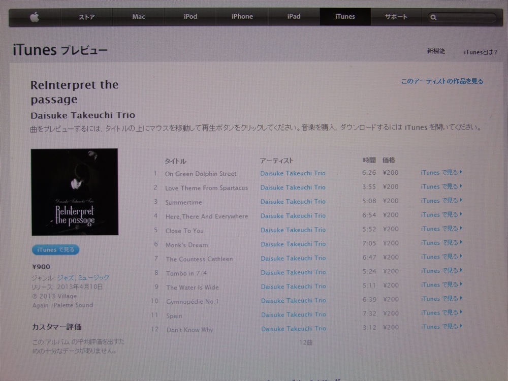 iTuens の便利なところは、1曲からでも購入出来るという事ですが、自分としては、是非とも全曲聴いて頂き、そして、最初の曲から順に聴いて頂きたいです。理由を問われると難しいのですが、1曲1曲への思い入れも強いものの、それ以上にCD全体の“作品”としての思い入れが強い為…とでも言いましょうか。特に曲順には変な拘りがあるくらいで(笑)、出来ればこの曲の後に、この曲を聴いて欲しい…ぐらいの思いがあるくらいです(笑)。レコーディングを行ったのが昨年の11月末で〔ピアノトリオ、カバー曲レコーディング参照〕、ラフの段階で音源が出来上がったのが12月中旬…。そこから何度も何度も自分は録音したものを聴いてきましたが、実は今でも飽きる事無く聴けてしまっているのです。何を親バカのような発言を…と思われてしまいますが(笑)、全て自分の拘りを録音にぶつける事が出来たからこそ、現在でも思い続ける事が出来るのかなとも思います。