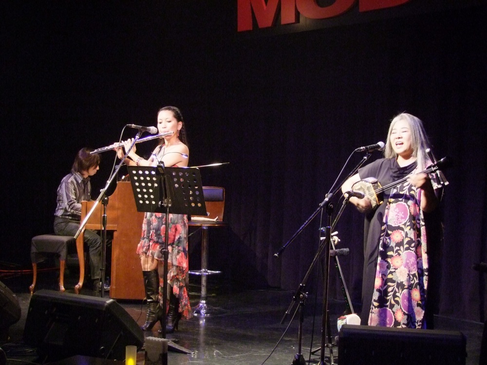 ビールを飲んですっきりしたところで、ライブ本番です。今回はゲストに古謝美佐子さんをお迎えして、1ステージ目が西仲さんと自分とのデュオでお送りし、2ステージ目に古謝さんを加えて3人でお送りするという形にしていました。最初のステージではジャズ・スタンダード曲を多めにお送りしましたが、これは恐らく2ステージ目の古謝さんへの配慮もあったように思われます。CDのリリース・ツアーでもあるので、CDからの曲を多めに…とも思いましたが、古謝さんは本格的な沖縄民謡歌手でもあります。それは2ステージ目でもたっぷり楽しめるというものです。