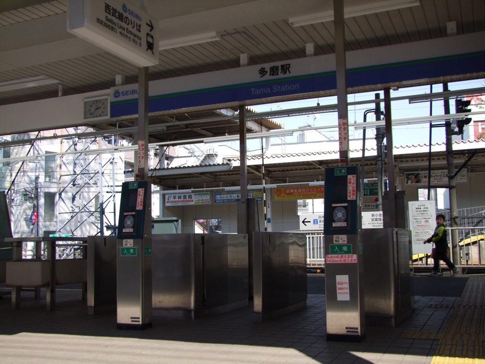 早速電車に乗り込み、武蔵境駅から2つ先の、多磨という駅まで行ってみます。ここは、武蔵境駅の次に乗降客数が多い駅のようで、この駅に着くと、半分以上のお客さんが降りてしまった事からも、それは明らかのようでした。この駅の北西方向には東京都立多磨霊園があり、自分の父方の祖先の墓もそこにあるので、地域的にはよく訪れている場所なのですが、もちろん、駅自体は初めての訪問となります。