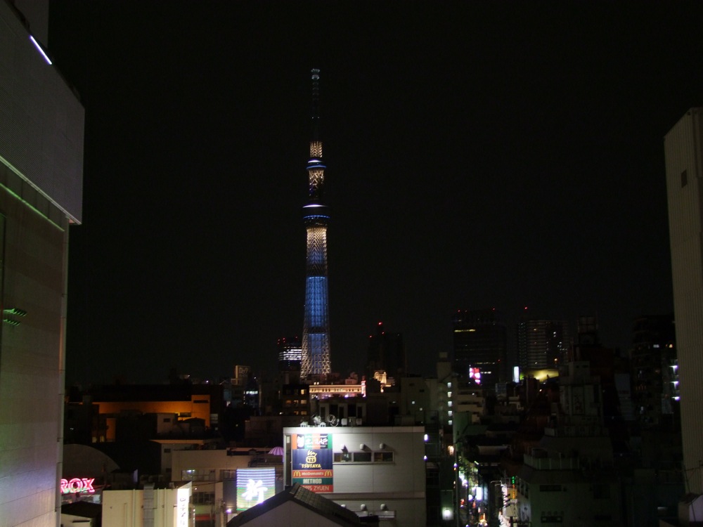 ここ Smile での特徴は、何といってもお店から東京スカイツリーが望めるという事でしょう。お店はビルの6階に位置し、その大きな窓から東方向を見ると、右上写真のように、照明が灯されている東京スカイツリーがすぐ視界に飛び込んできます。なかなか贅沢な環境とも言え、このスカイツリーの完成は、お店にとっても嬉しい出来事だったに違いありません。…ところで窓の淵辺りを見ると、壁が取り払われたような跡があり、元々は窓は無かったのかもしれませんね。そしてスカイツリーが完成した時に、展望もお店の名物としたのかもしれません。努力が垣間見れるような雰囲気が伝わってきたものでした。