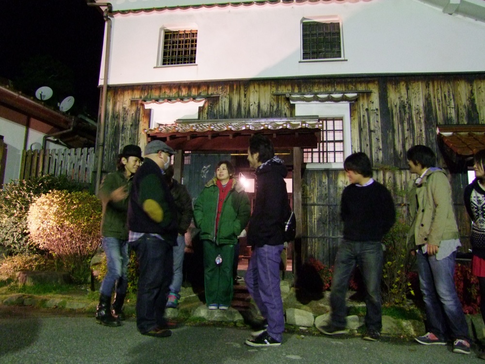 今回の本番は17:30頃からと、日曜という事もあり、少し早目に設定されていましたが、既に辺りの日も暮れて、蔵も少しライトアップされて、良い雰囲気になってきました。そして、予想以上に多くの方にお越し頂いて、これは寒さも忘れるような勢いでした。お酒も飲んで景気付いてきた事ですし(笑)、大いに盛り上がっていこうではありませんか♪